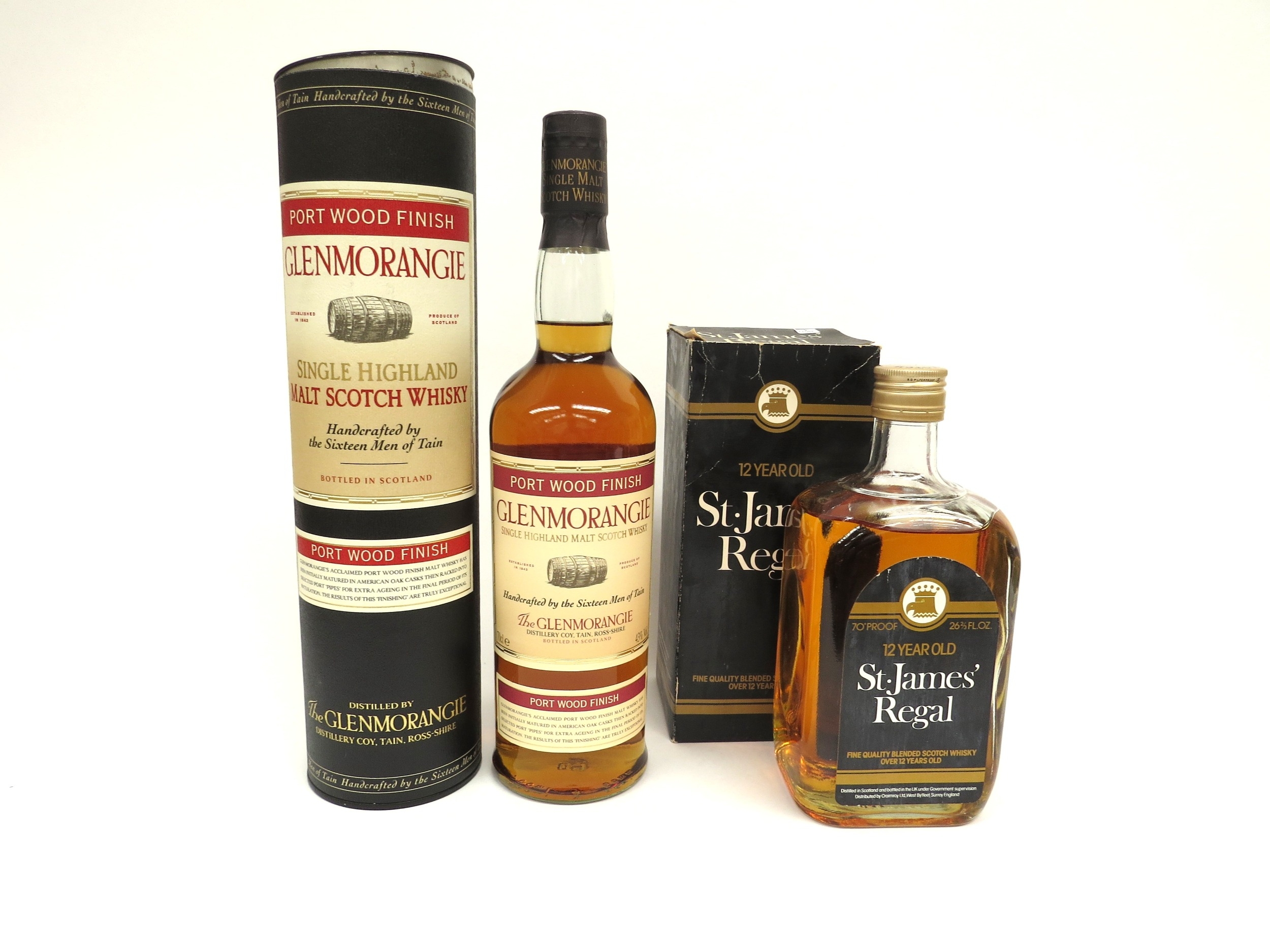 Glenmorangie Port Wood Finish Single Highland Malt Scotch Whisky, 70cl, in tube. St. James' 12 Year Old Blended Scotch Whisky, 26.2/3fl.oz, boxed (2)