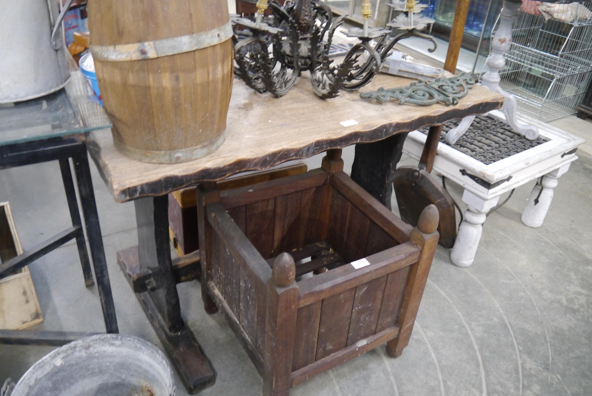 An oak topped tavern table