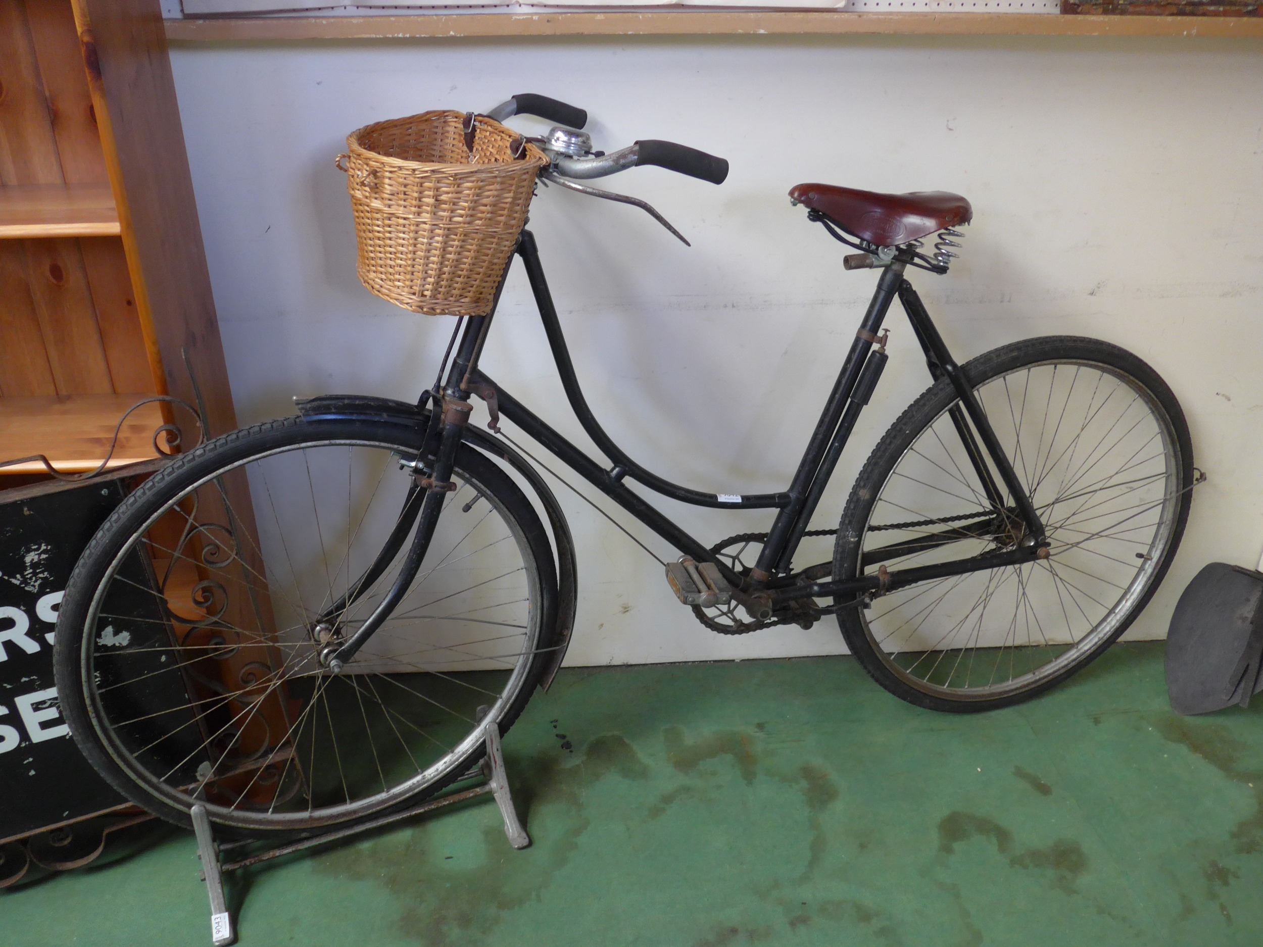 A 1917 Humber loop frame lady's bike with basket and leather Brookes saddle