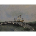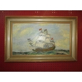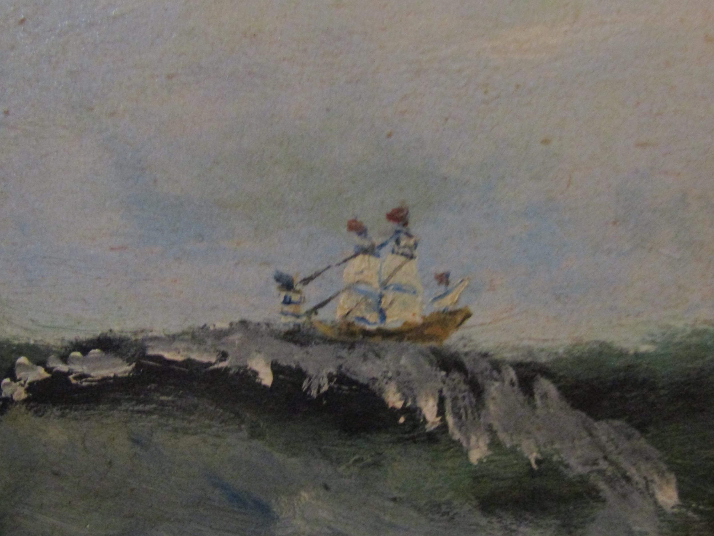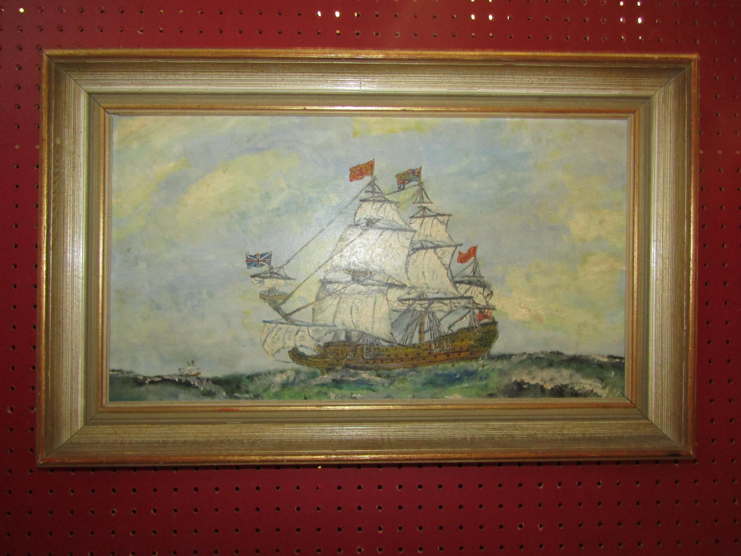 An oil on board of a ship at sea, framed, 26cm x 48cm image ...