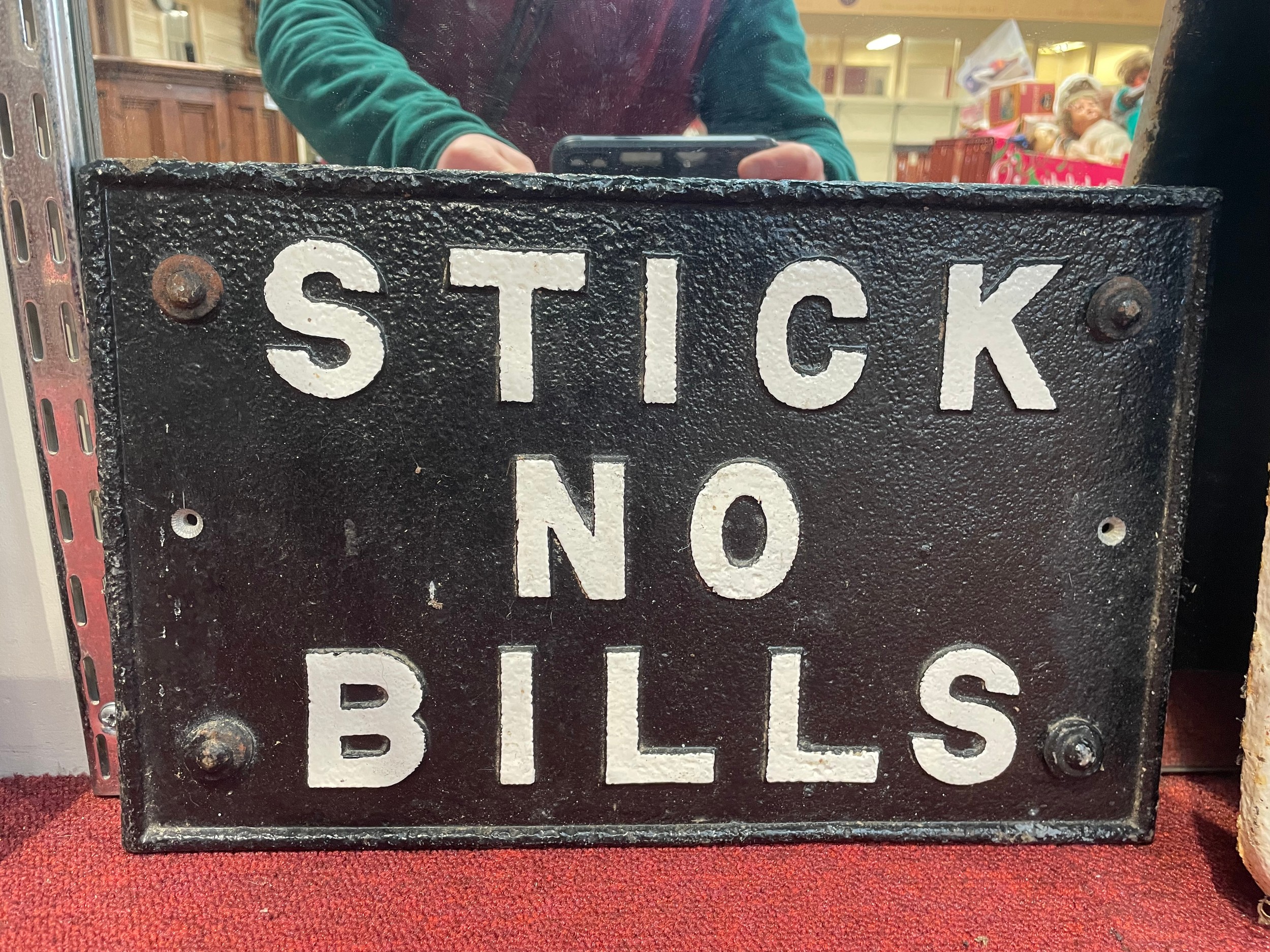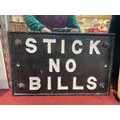 A cast iron sign - Stick No Bills, with what looks like original corner fixings, cut on reverse, 37cm x 24cm