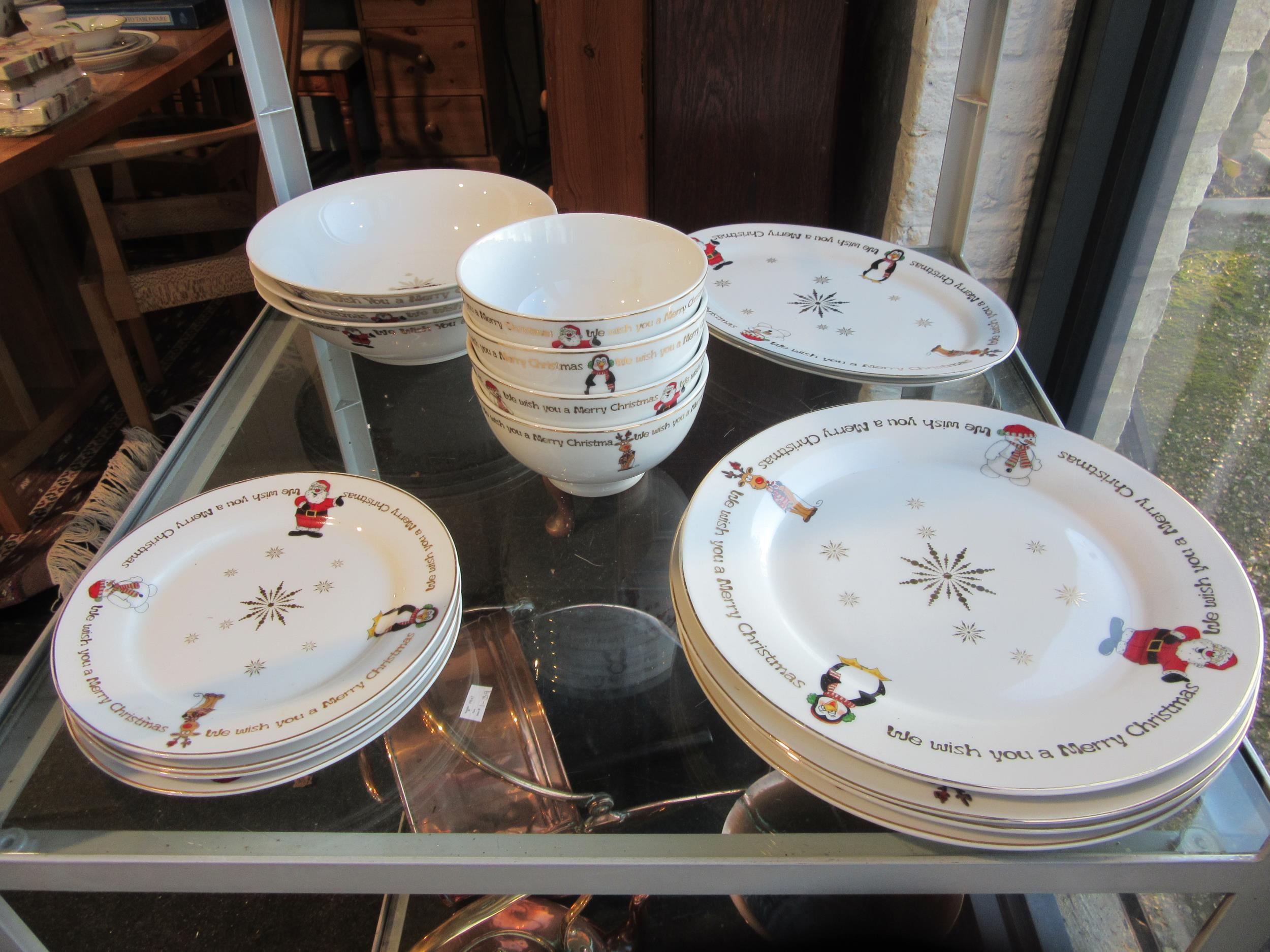 A quantity of Christmas themed ceramics, dinner plates, tea plates, bowls, platters and vegetable dishes