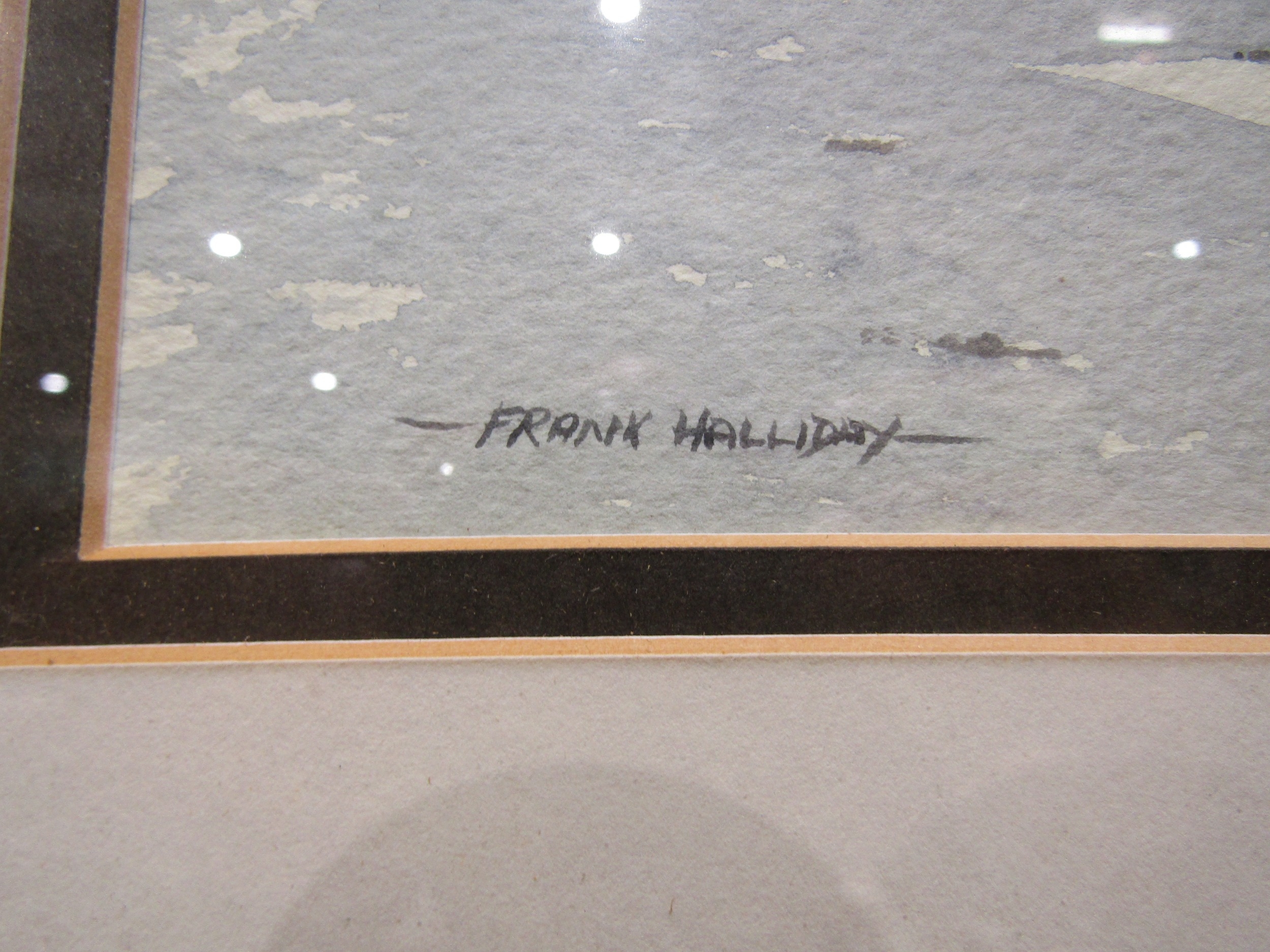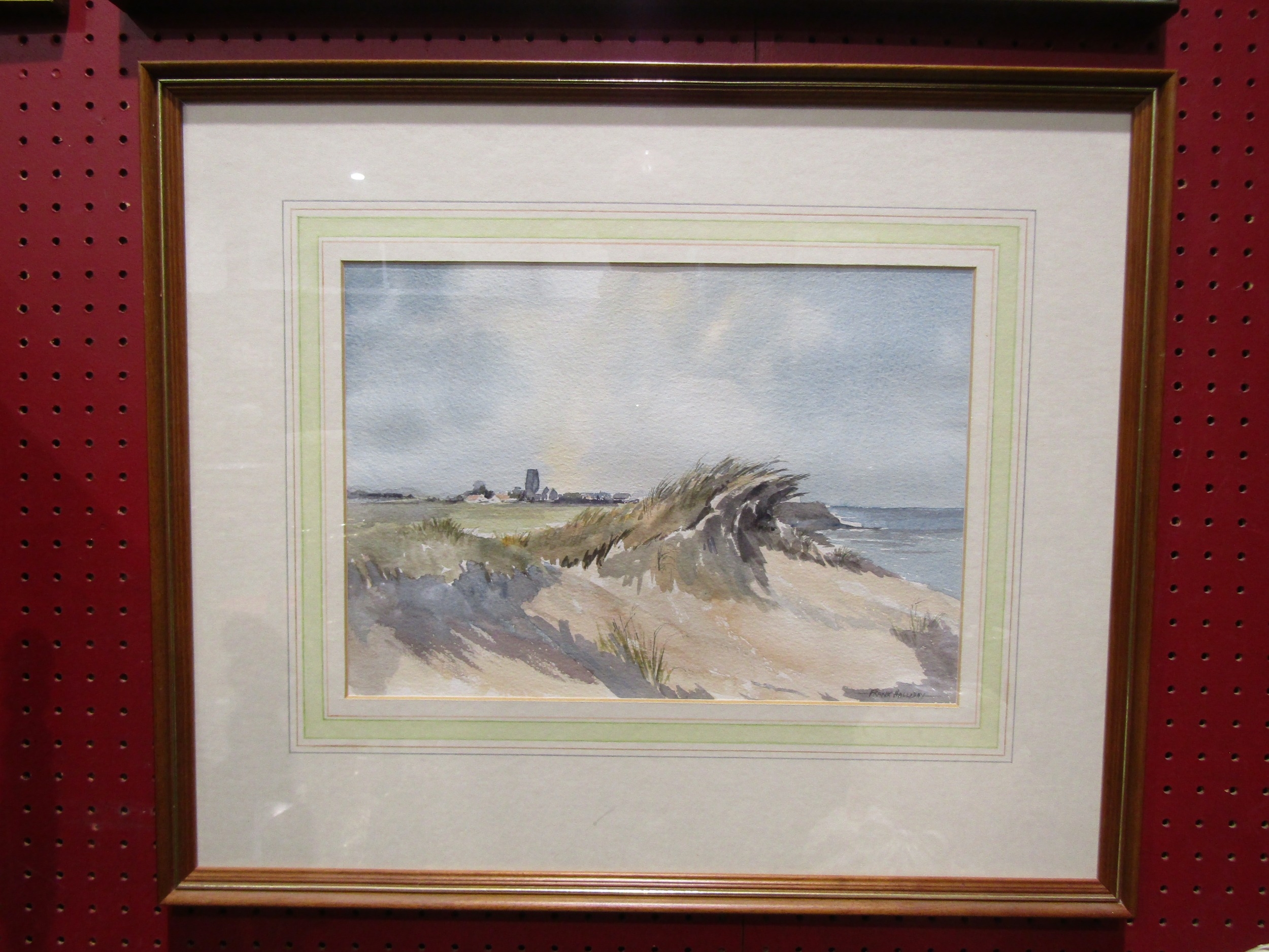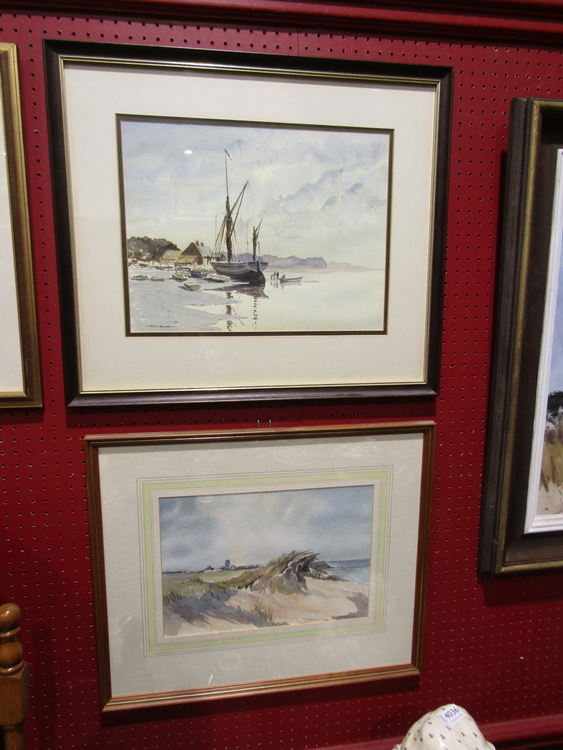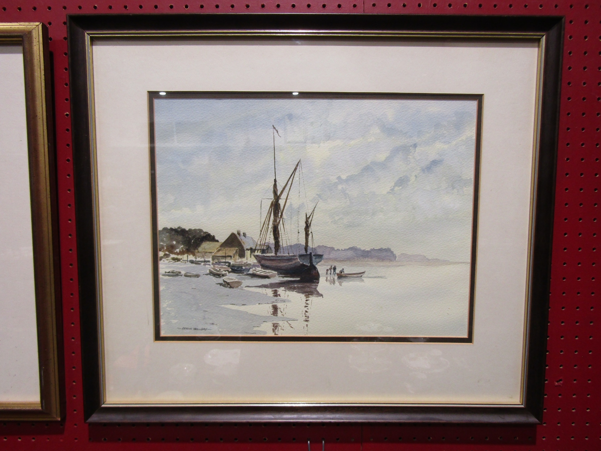 FRANK HALLIDAY (1934-2003): Two watercolours of East Anglian coastal scenes, framed and glazed, 29cm x 39cm and 24cm x 34cm image sizes