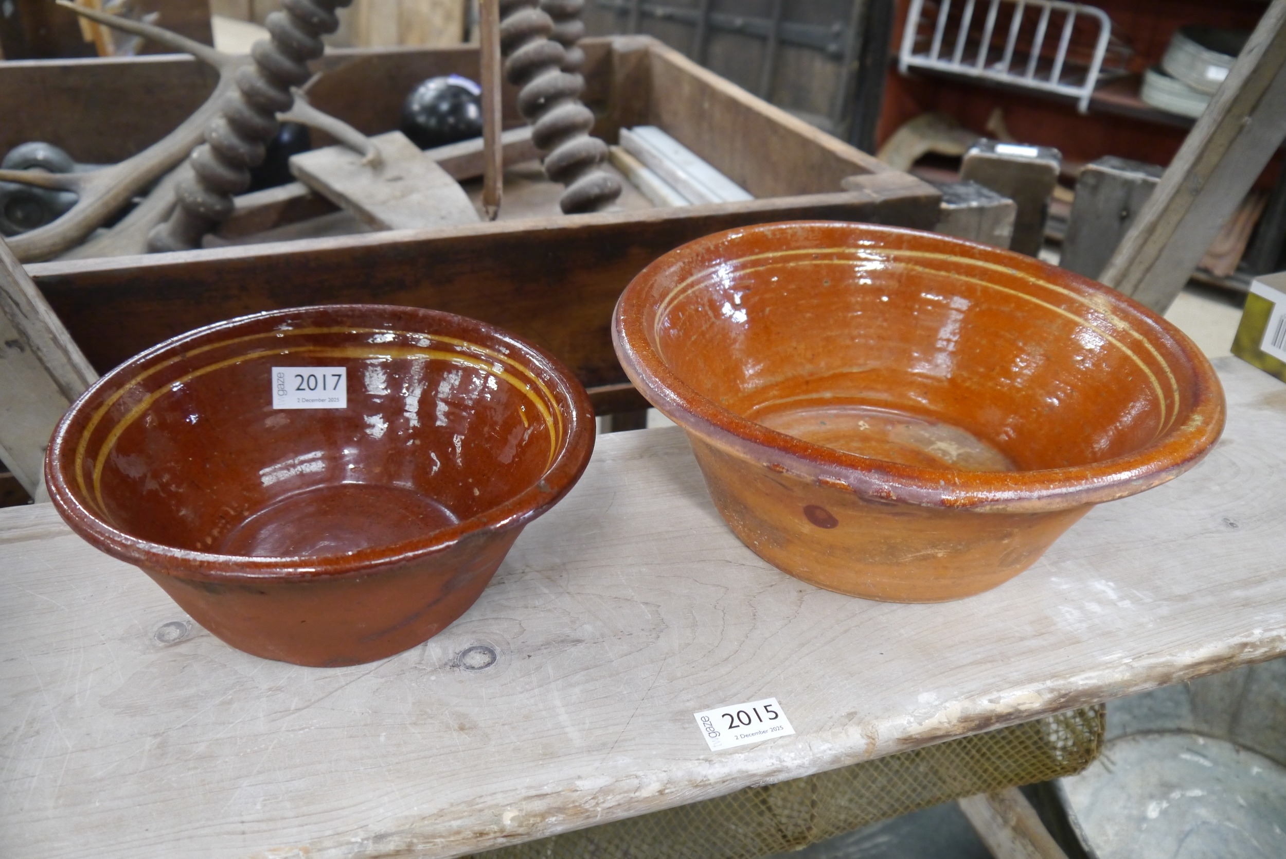 Two glazed terracotta slip ware bowls
