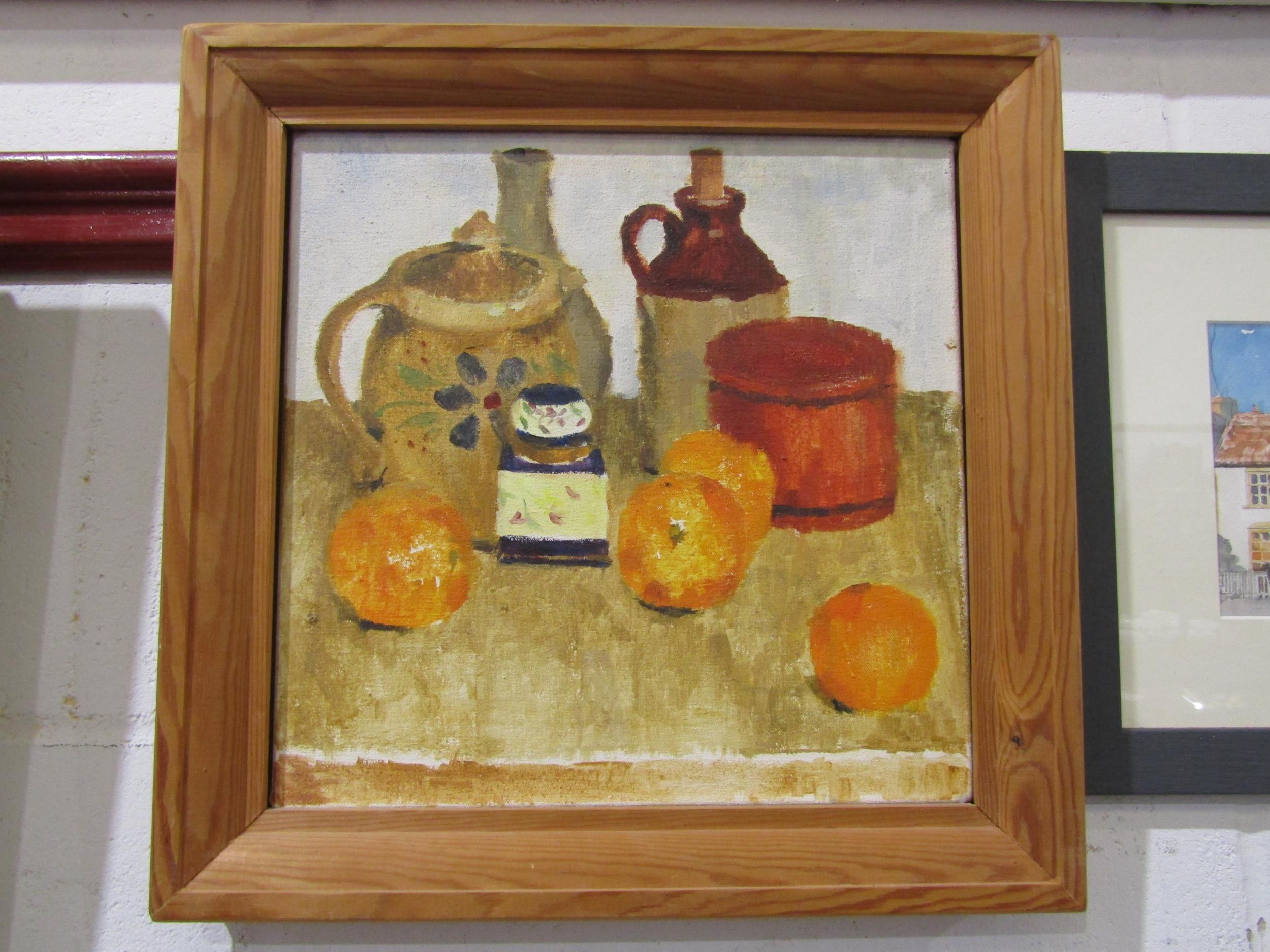An acrylic still life on canvas, unsigned, 30.75cm x 30.75cm...