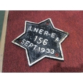 A cast iron LNER-E star tank wagon plate, Sept 1933