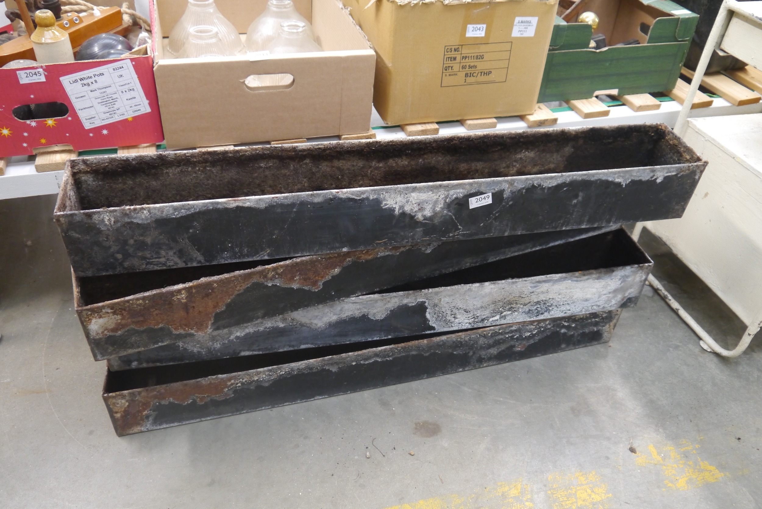 Four metal planters 107 X 12 X 14cm