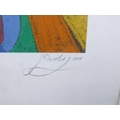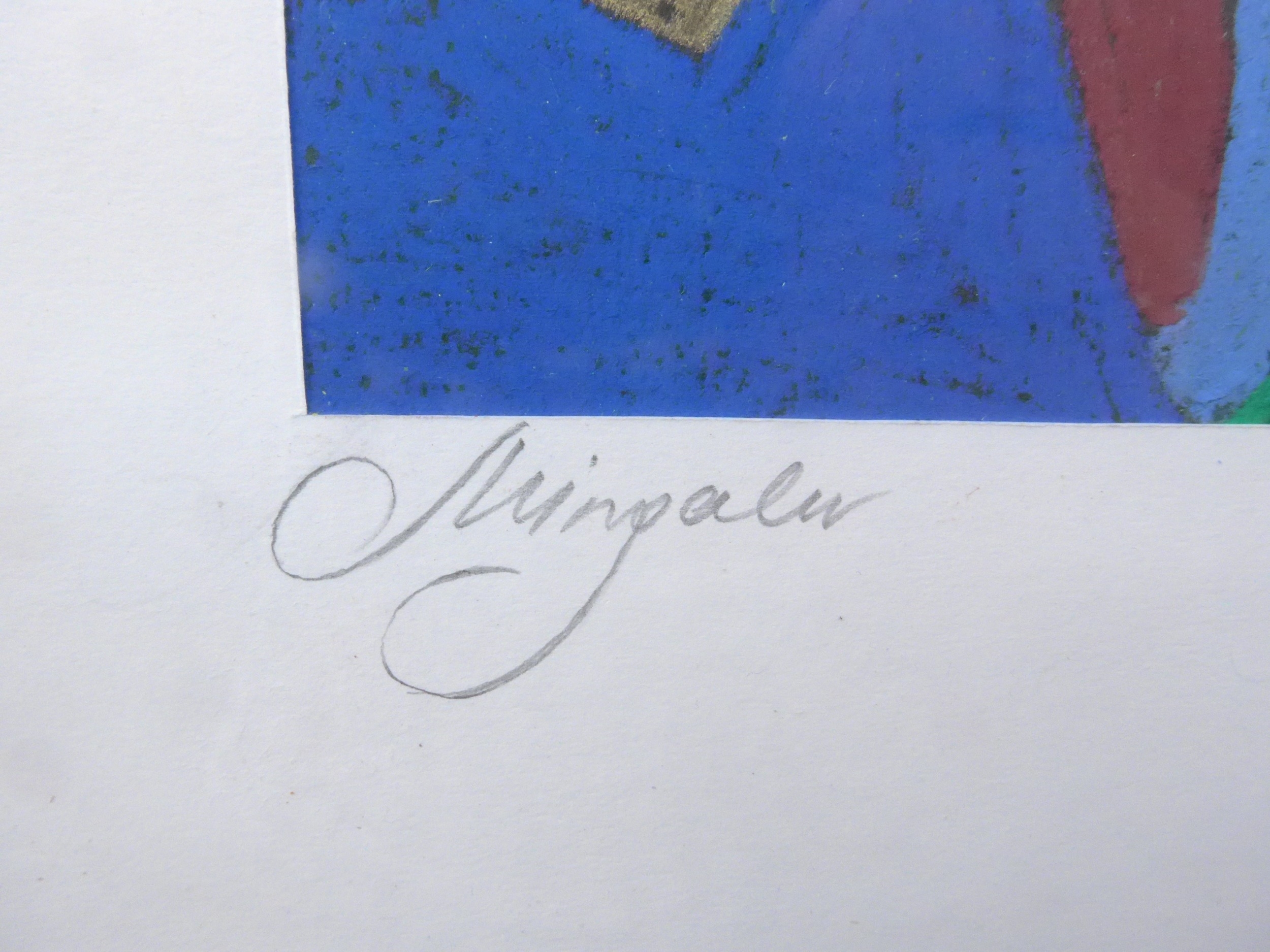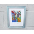 A framed and glazed Continental mixed media panel in acrylic depicting stylised town scene, indistinctly signed in pencil. Image size 15.5cm x 12cm. From the estate of Antony Maitland, illustrator and artist, winner of the Kate Greenaway medal 1961