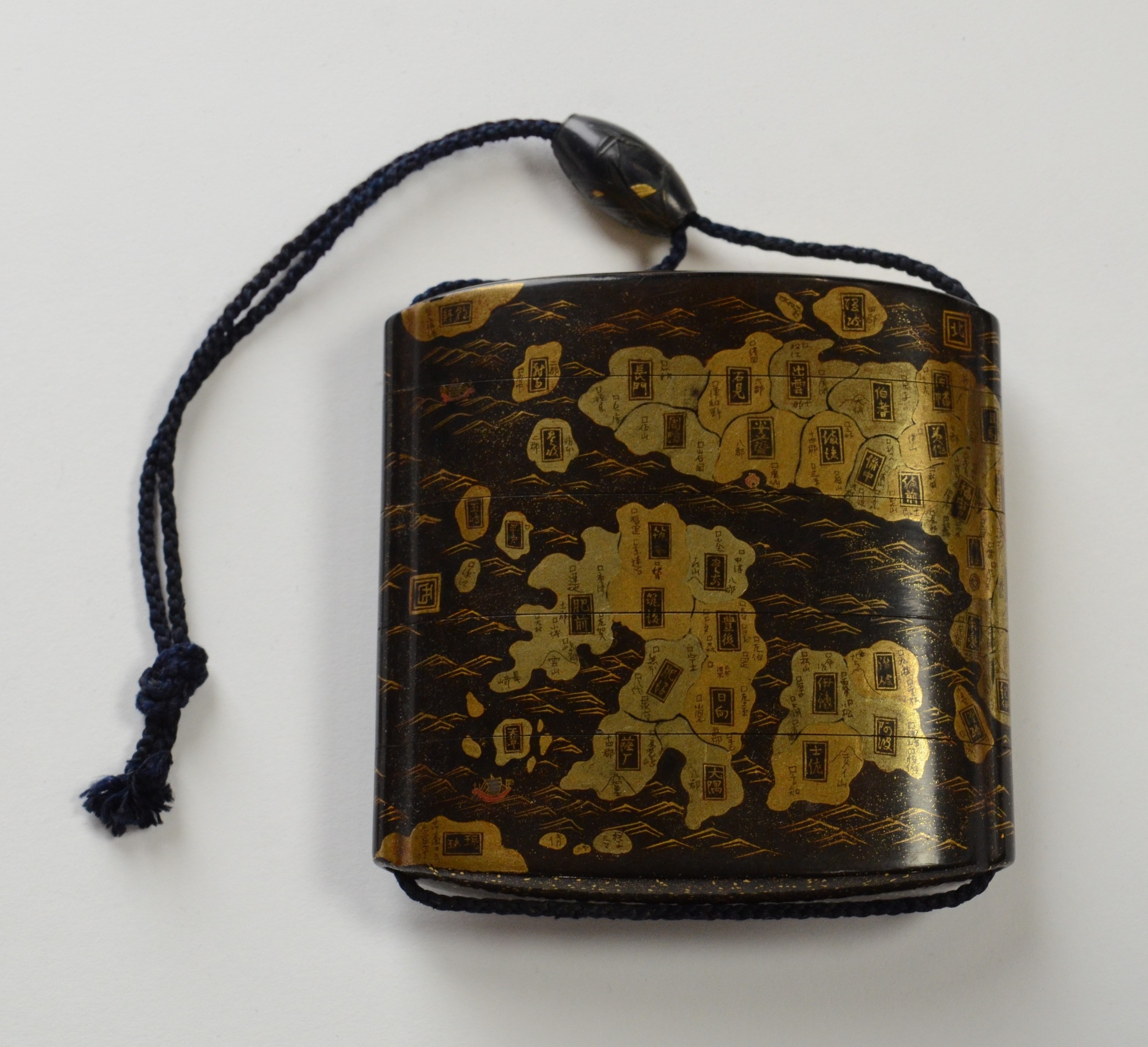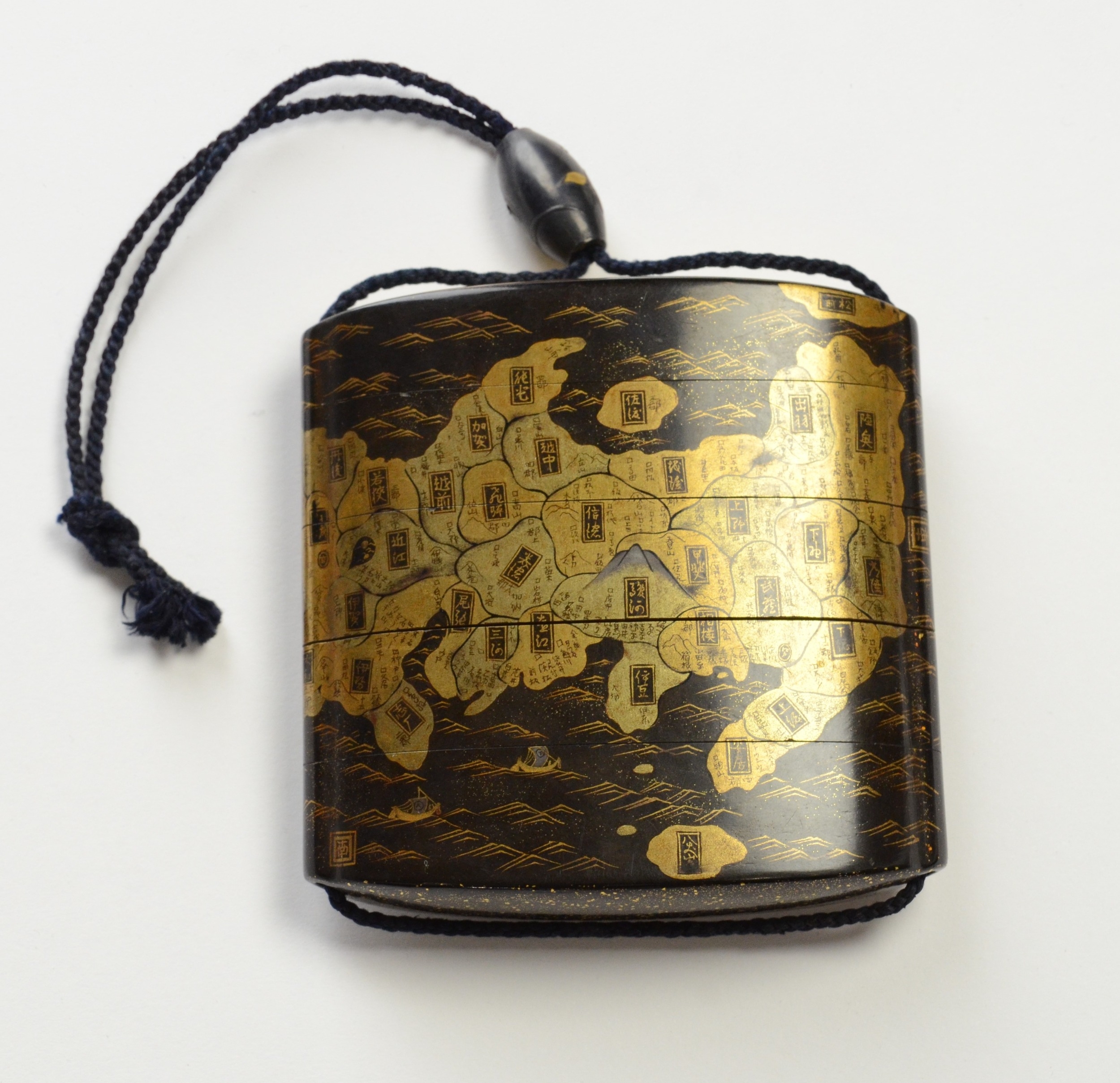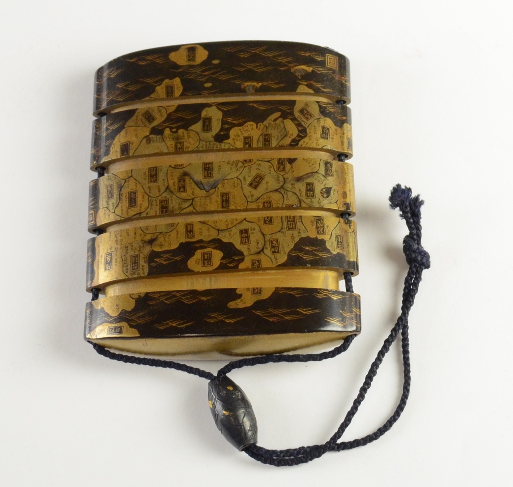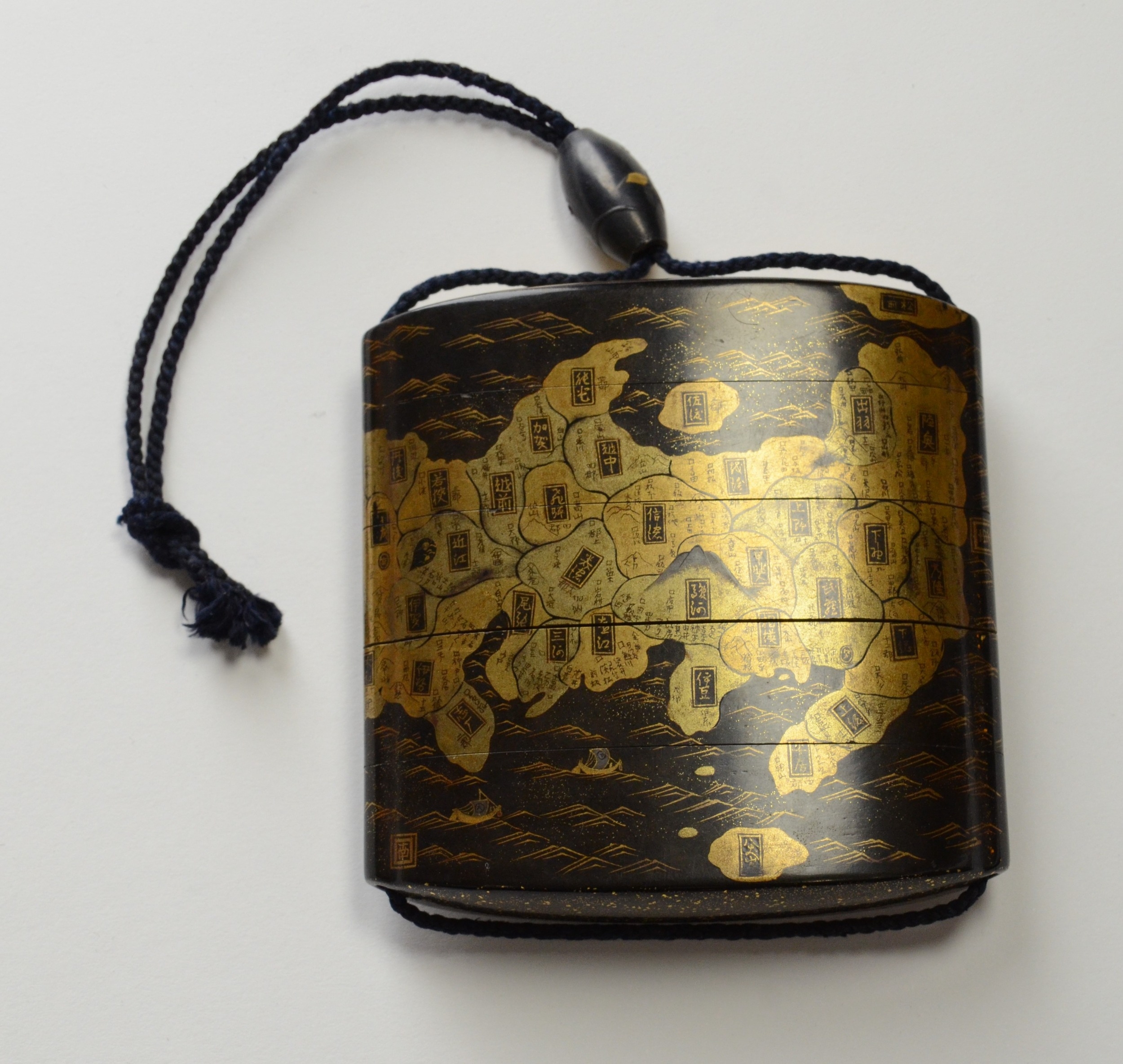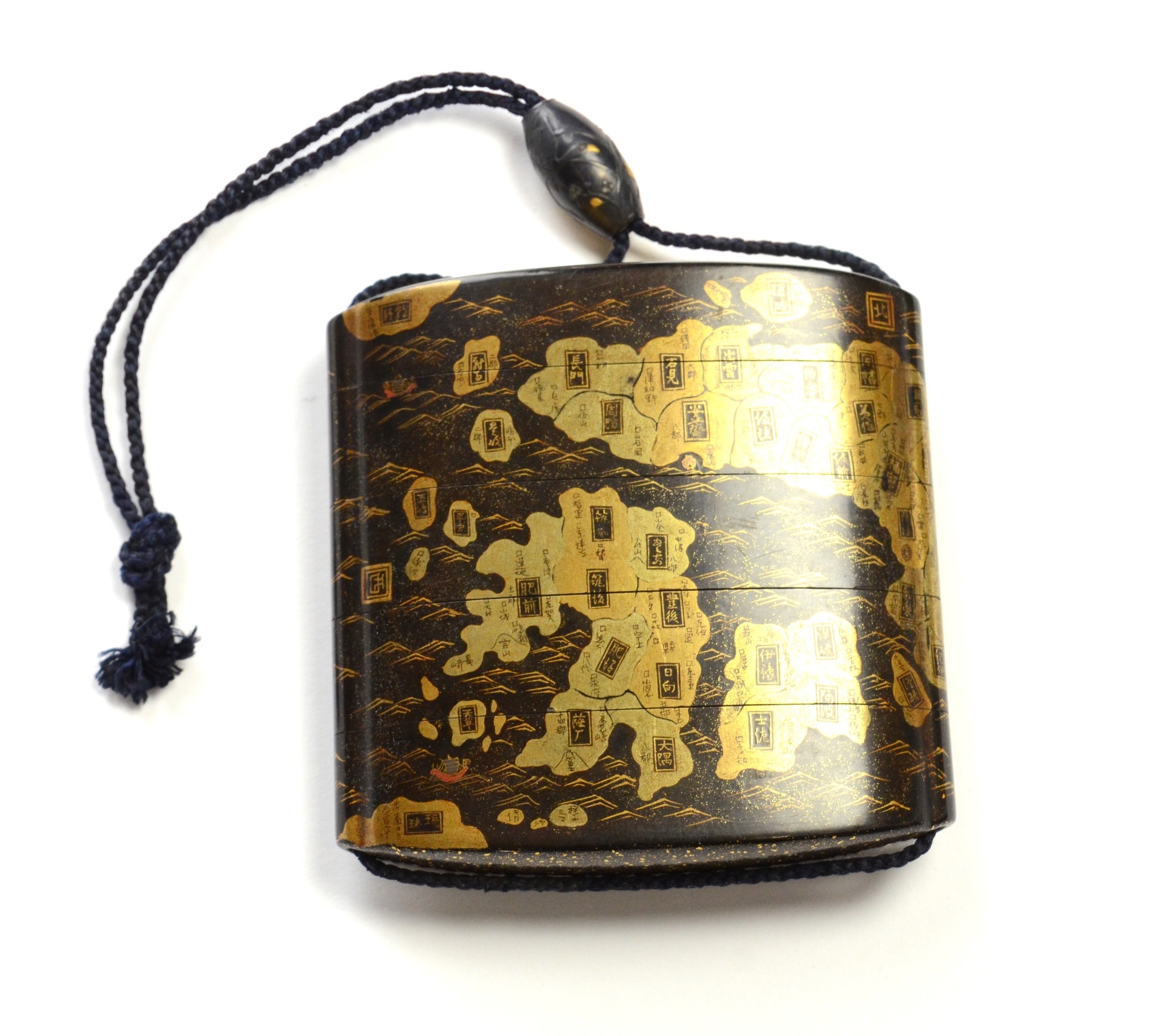 A gold lacquer five case inro depicting a map of Japan