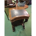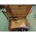 Circa 1850, a burr walnut Davenport the brass gallery over a fitted maple interior over four drawers and four faux with carved leg supports on bun feet and white ceramic castors (small pull out hinged drawer to side) 82cm tall x 56cm wide x 57cm deep
