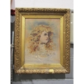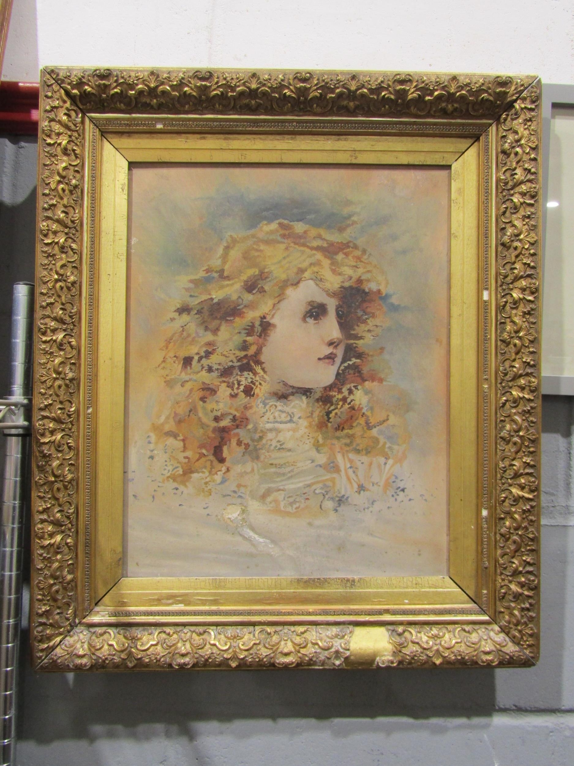 A 20th Century mixed media on canvas of an Edwardian girl, set in an ornate gilt frame A/F. 47cm x 37cm image size