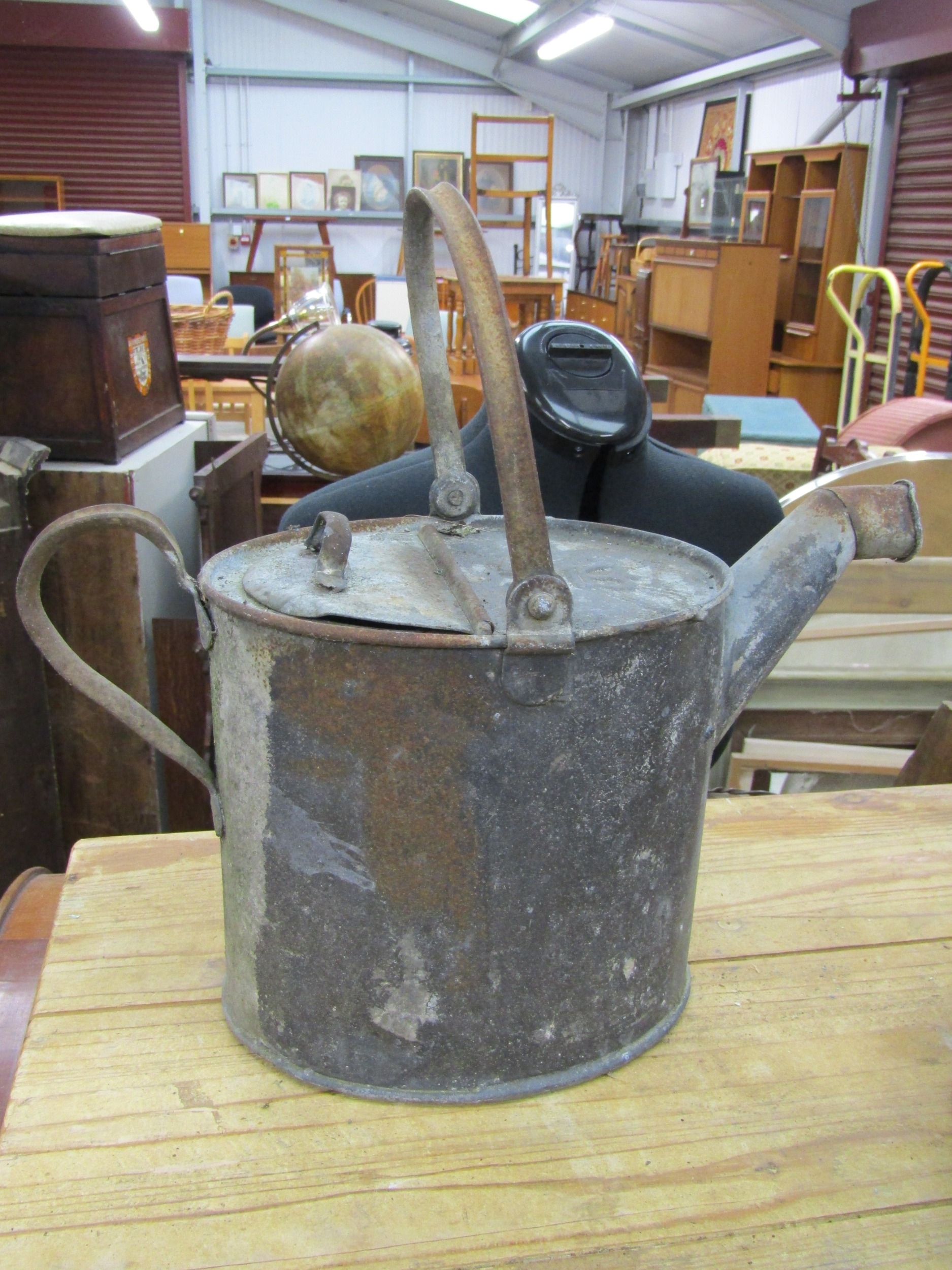 A galvanised G.R watering can