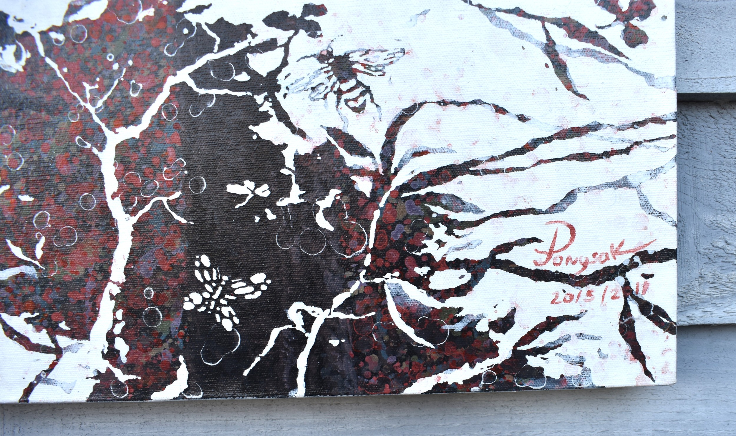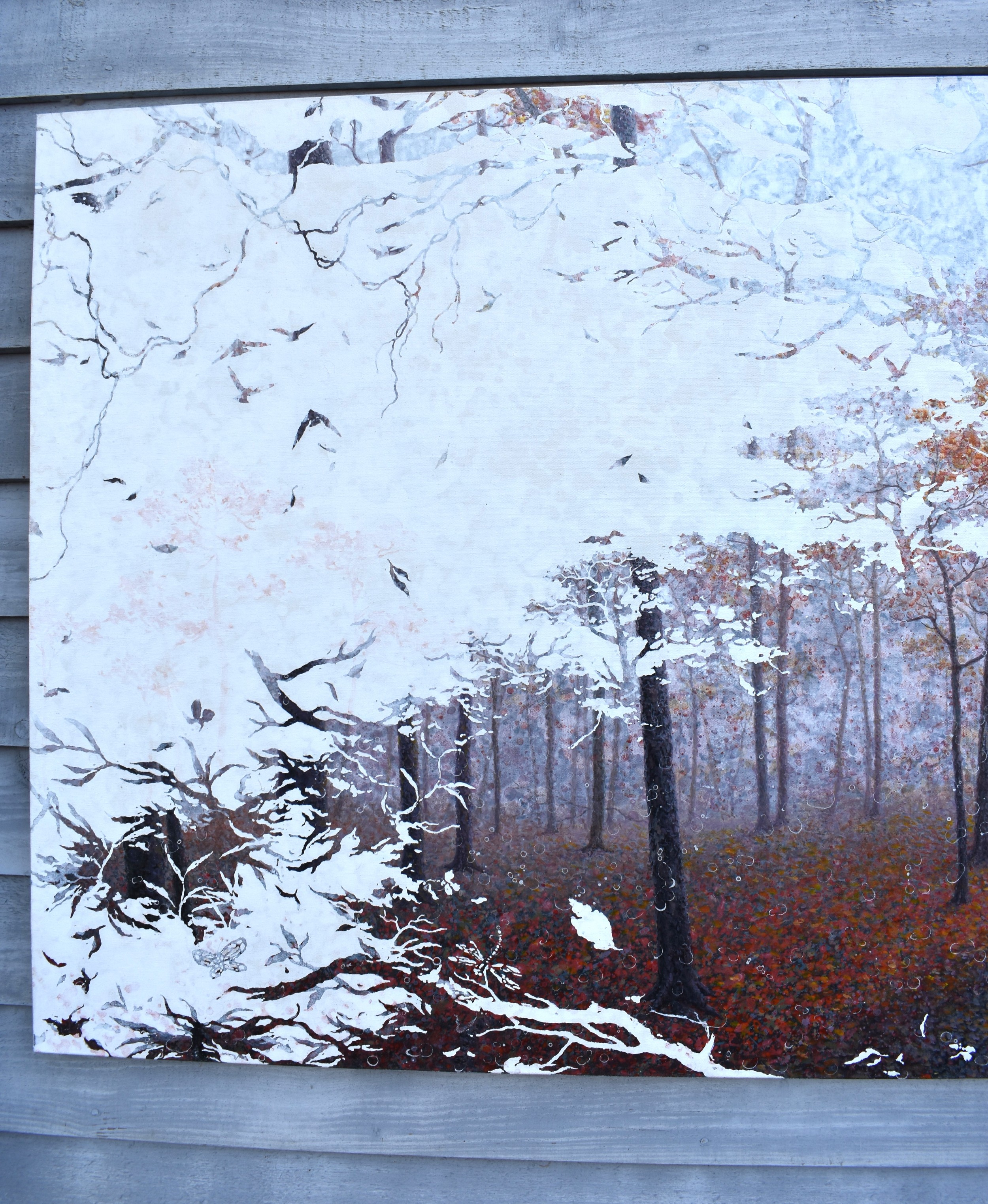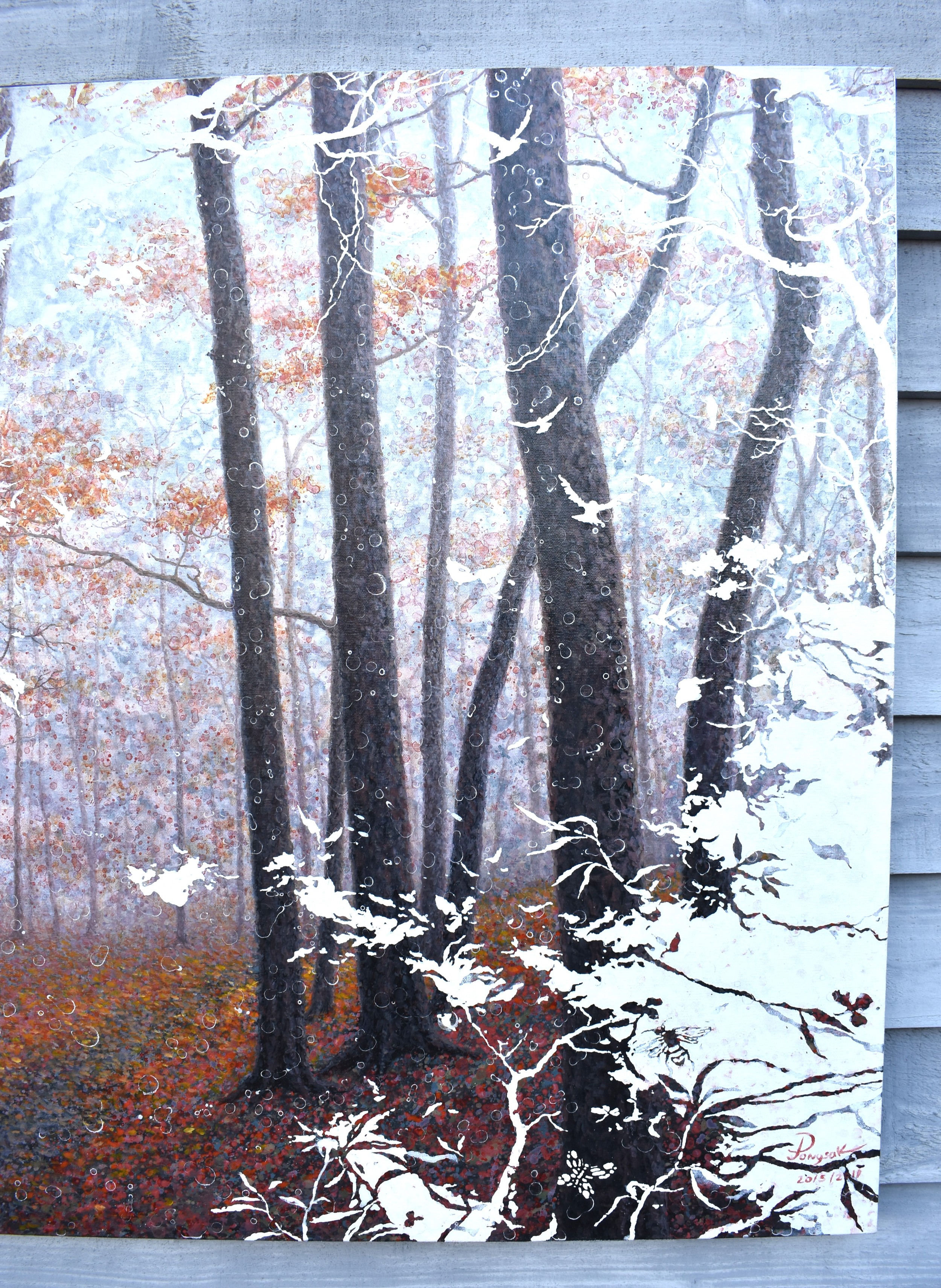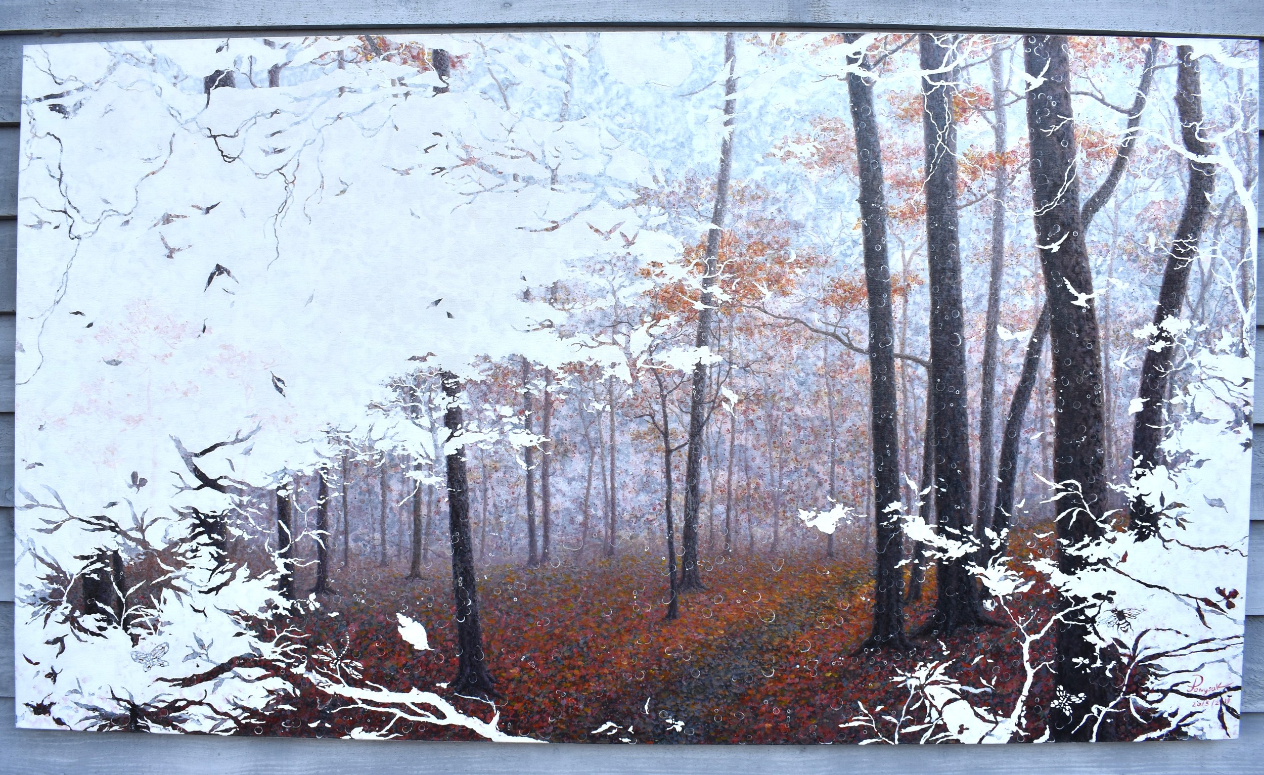 PONGSAK KAMJORNRASAMEKIT (b.1974) Thai Contemporary Artist: abstract painting depicting woodland and leaves. This natural scene exudes a sense of tranquillity with the artists deliberate omission of certain elements, dated 2011, oil on canvas, 90cm x 160cm