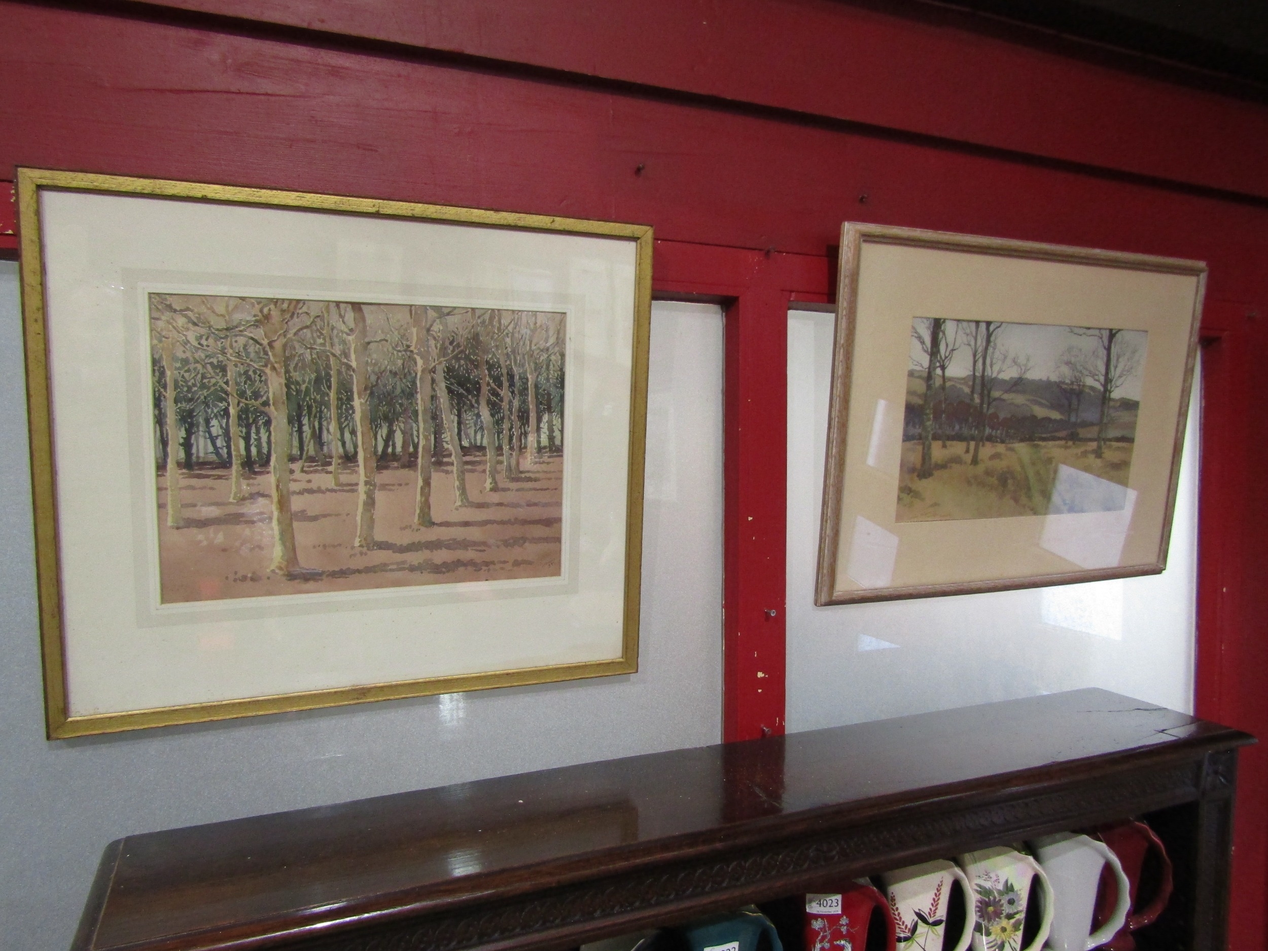 HENRY POTTER STEVENS (1875-1965): Two watercolours depicting trees "Looking Towards Fairlight, Sussex" and "The Plantation". Both have provenance labels to reverse. 50cm x 57cm and 48cm x 63cm. Framed and glazed