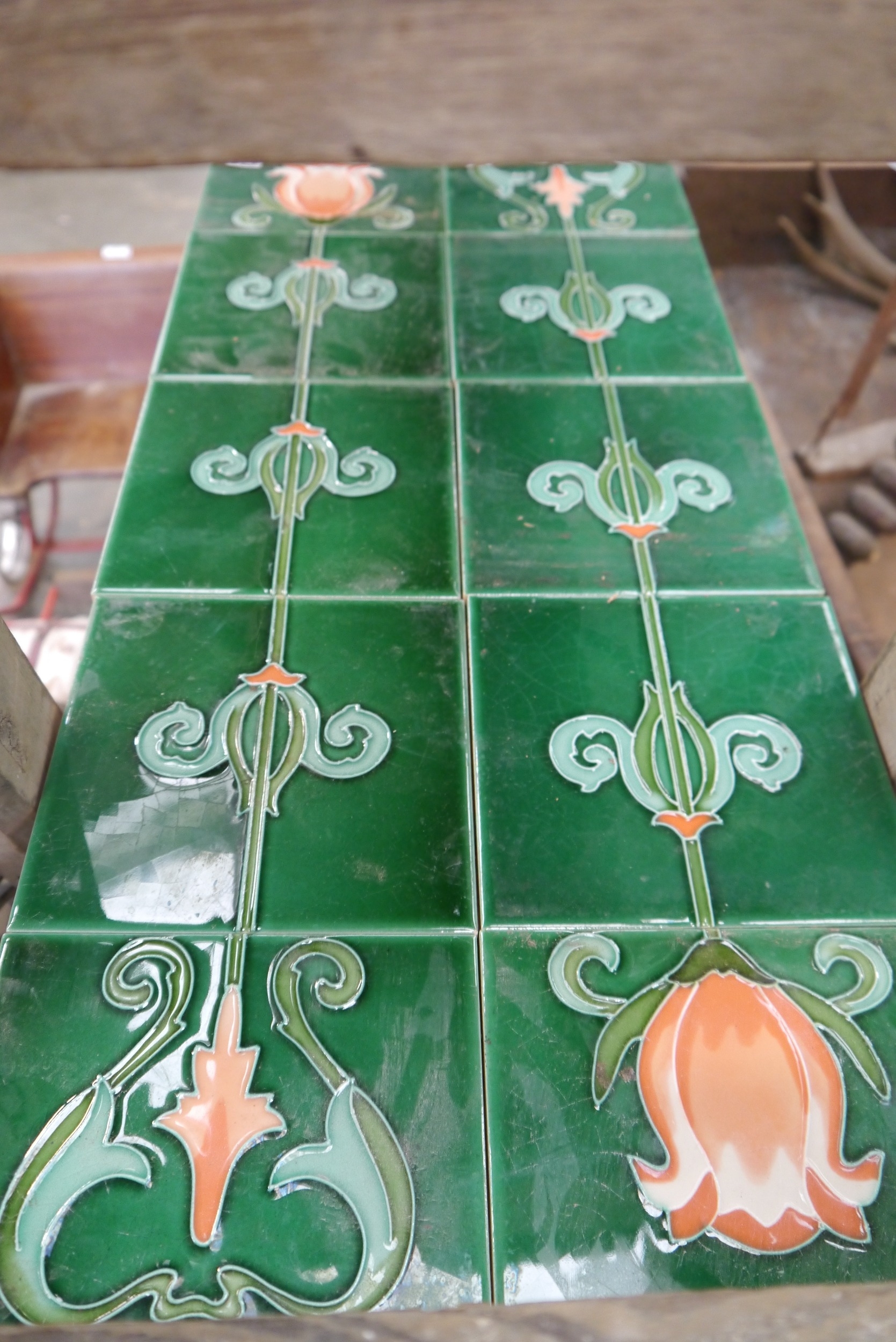 Two sets of fire place tiles