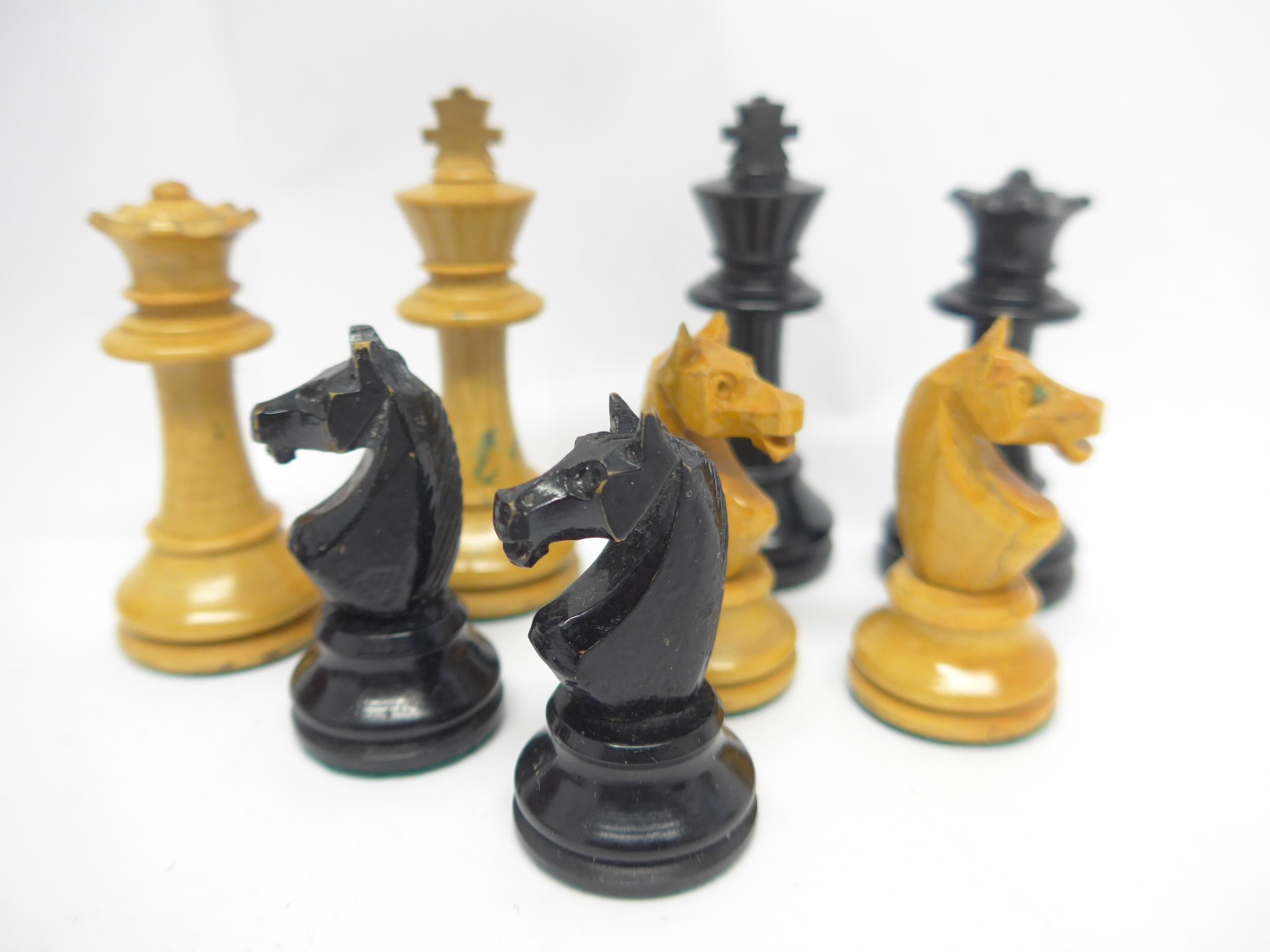 A vintage wooden chess set, tallest piece 7cm, and a set of ...