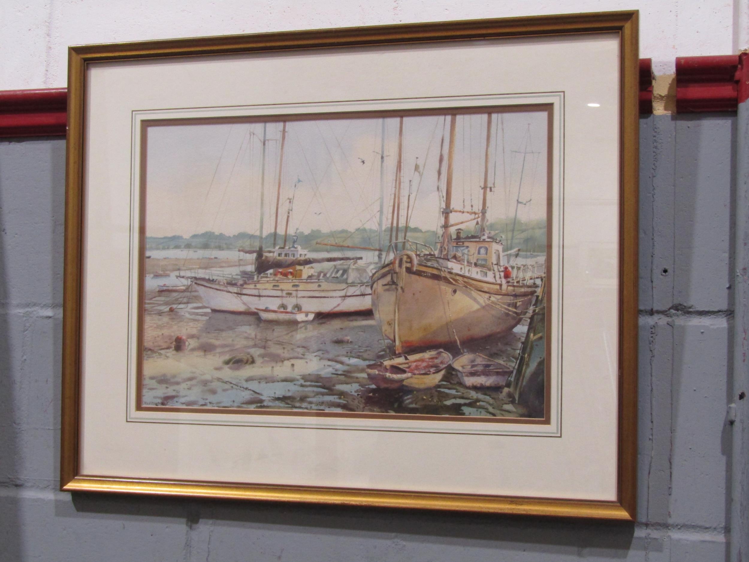 NEIL WESTWOOD (local artist): A watercolour entitled "Woodbridge Suffolk", signed lower left, framed and glazed, 33cm x 47.5cm image size