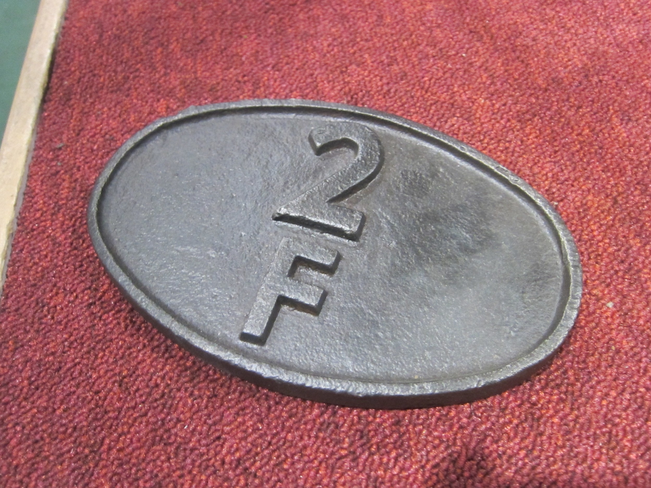 A cast iron smokebox shed plate 2F Coventry 1935 to 1950, Market Harborough 1955 to 1958, then Woodford Halse 1958 to 1963, and Bescot 1963 to 1973