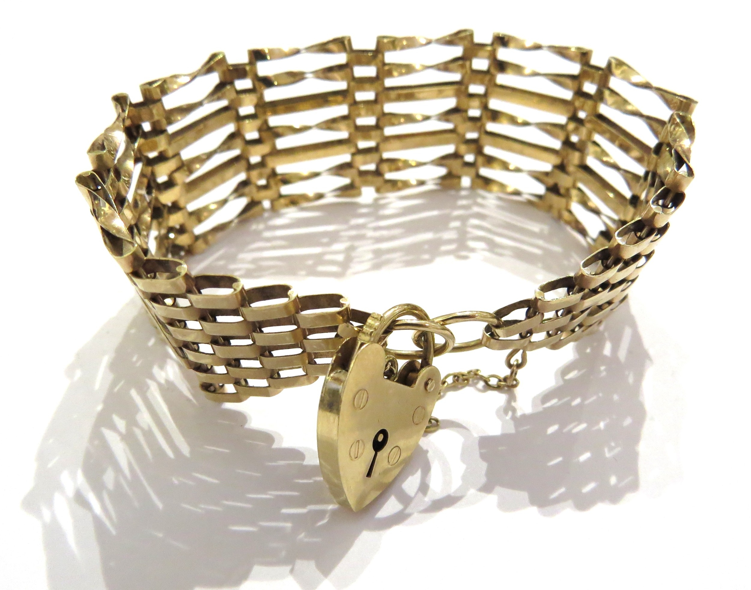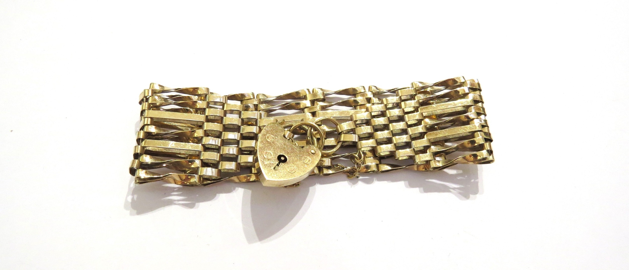 A 9ct gold gate bracelet, 2.5cm wide, 17cm long, 14.7g