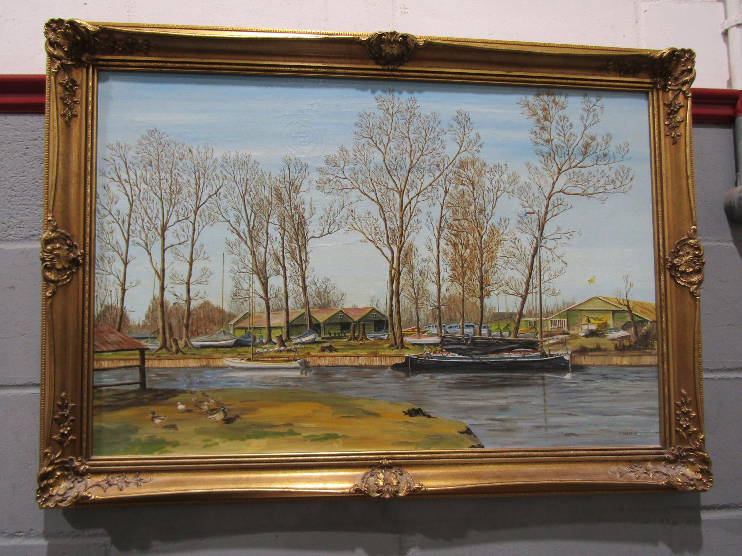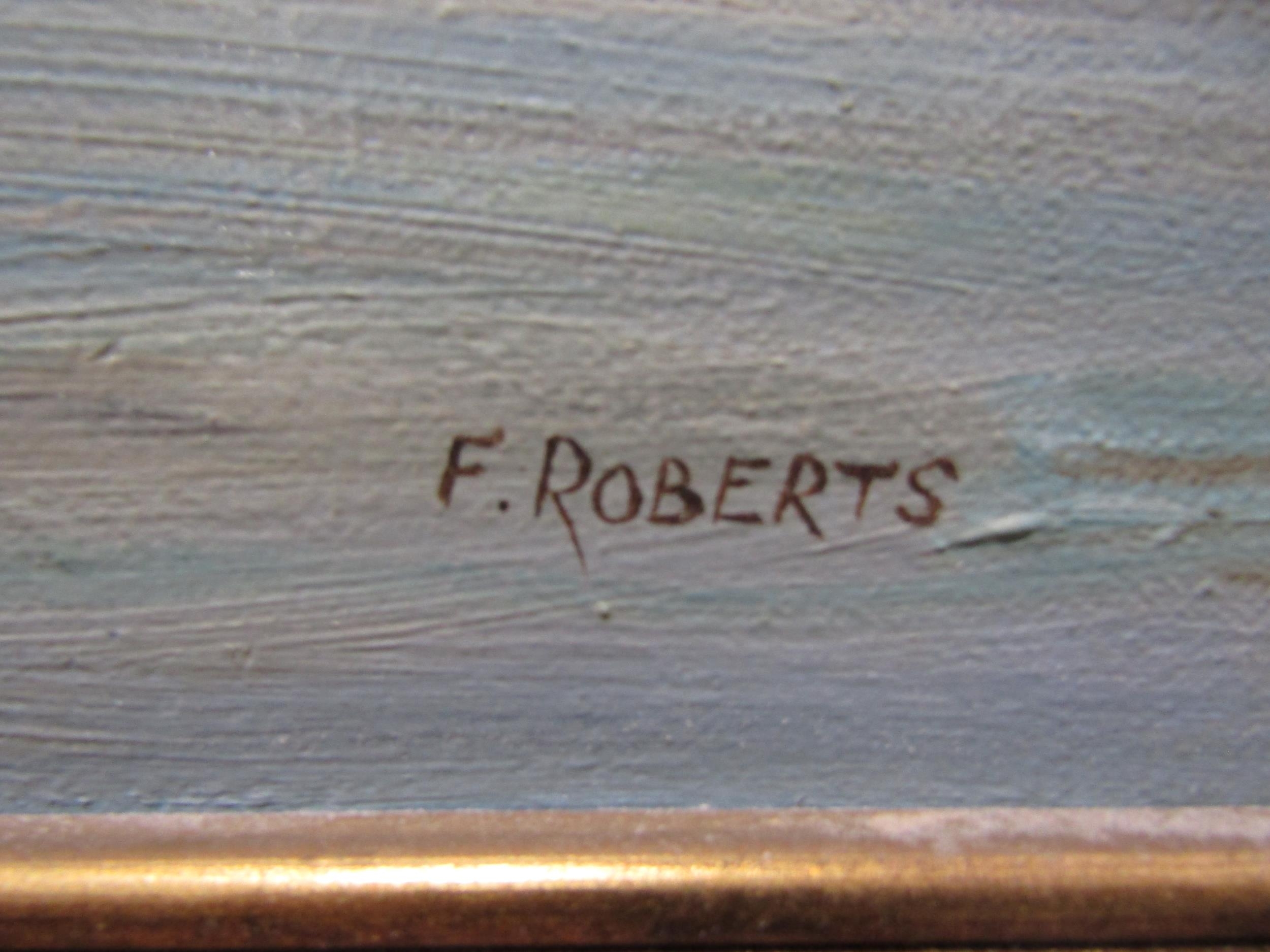 F. ROBERTS: An oil on canvas of the Wherry Albion, signed lower right, gilt framed, 59cm x 89.5cm image size. Norwich School of Art stamp verso