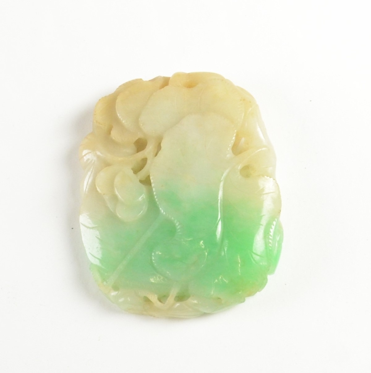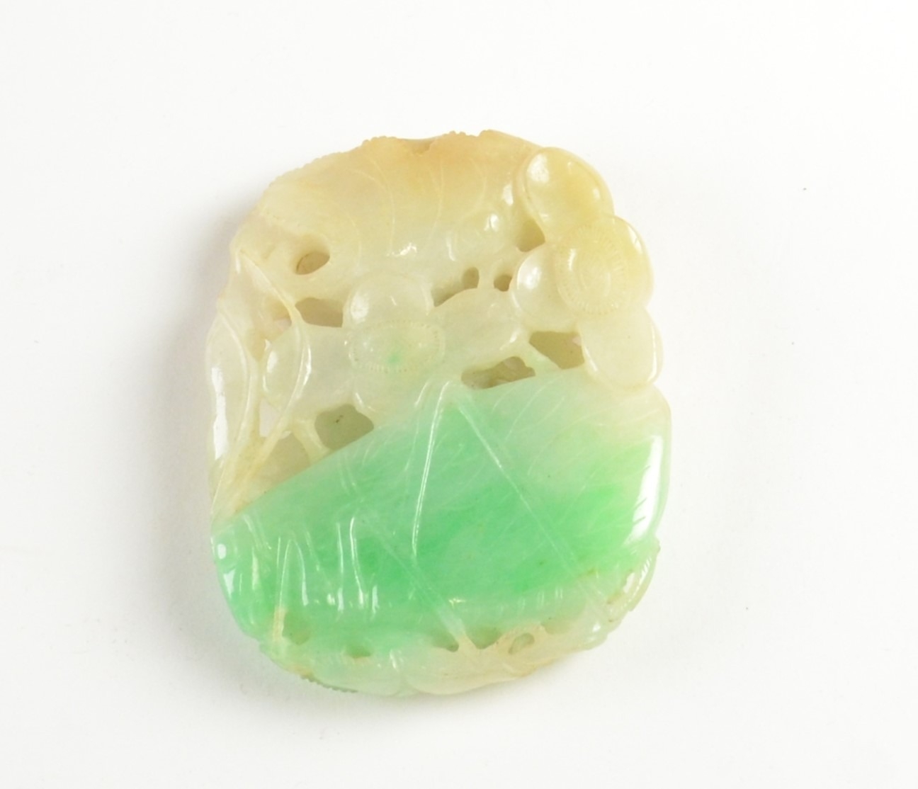 A Chinese reticulated carved jadeite pendant5.3cm x 4.5cmProvenanceHenry Potter Stevens Collection