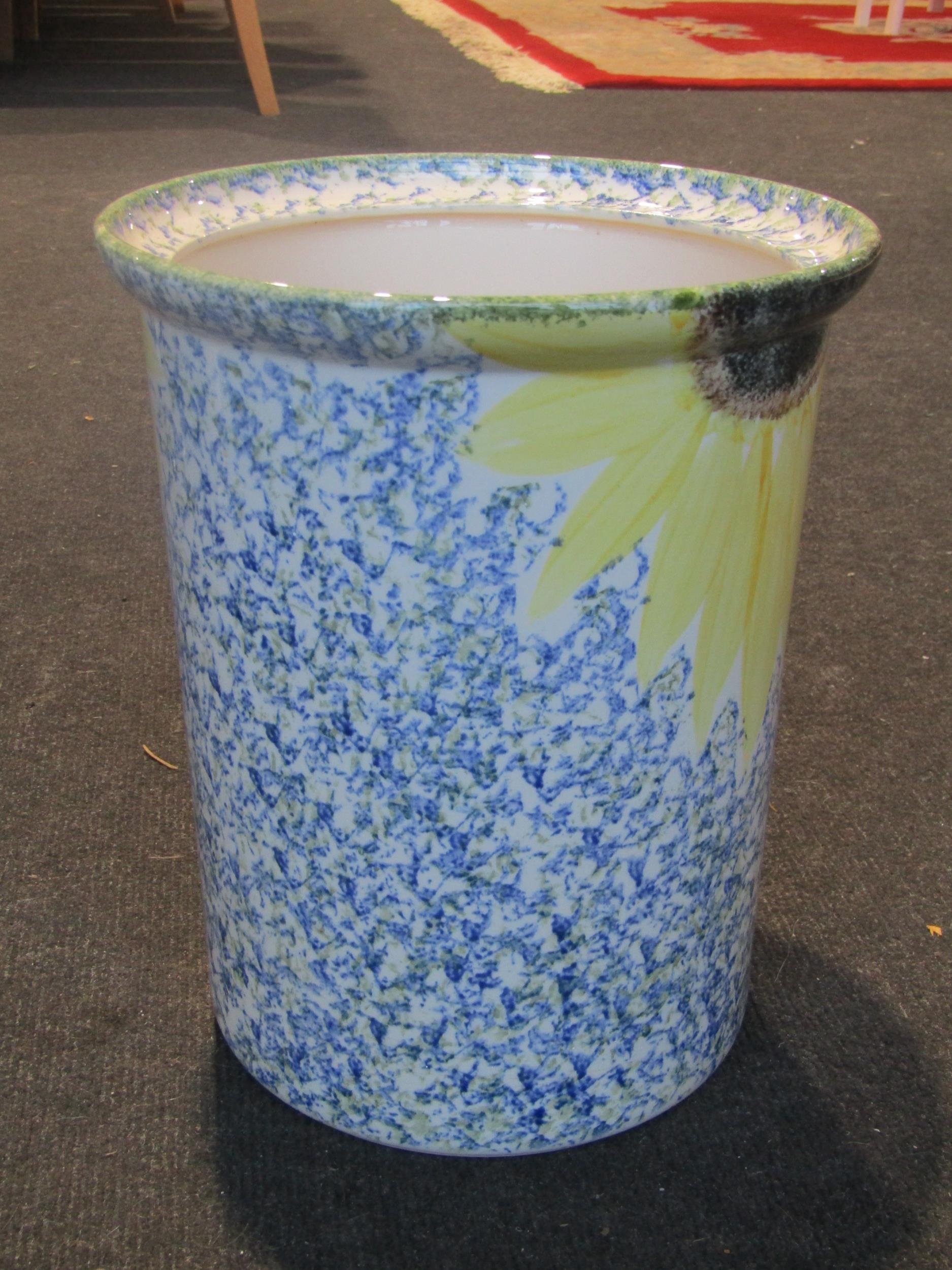 A Poole Pottery hand-painted jardinière / vase, sunflower pattern. 28cm tall