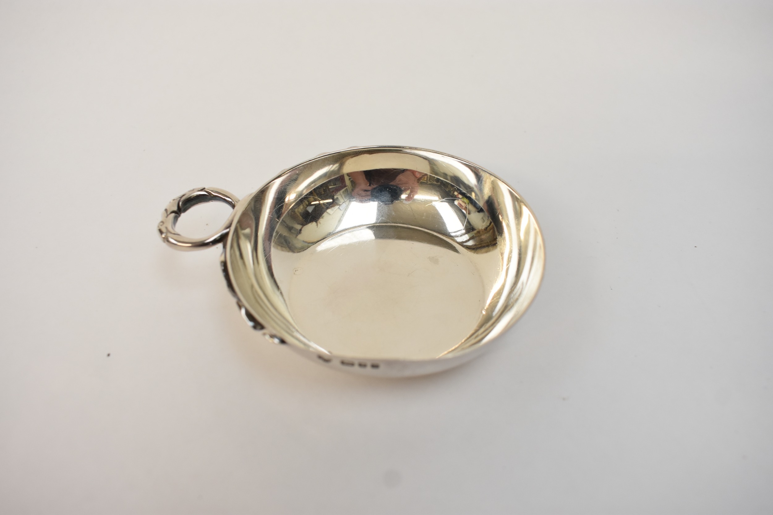 C J Vander Ltd, silver wine taster with serpent handle, London 1962, 8.2cm diameter, 89g