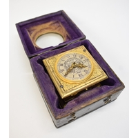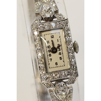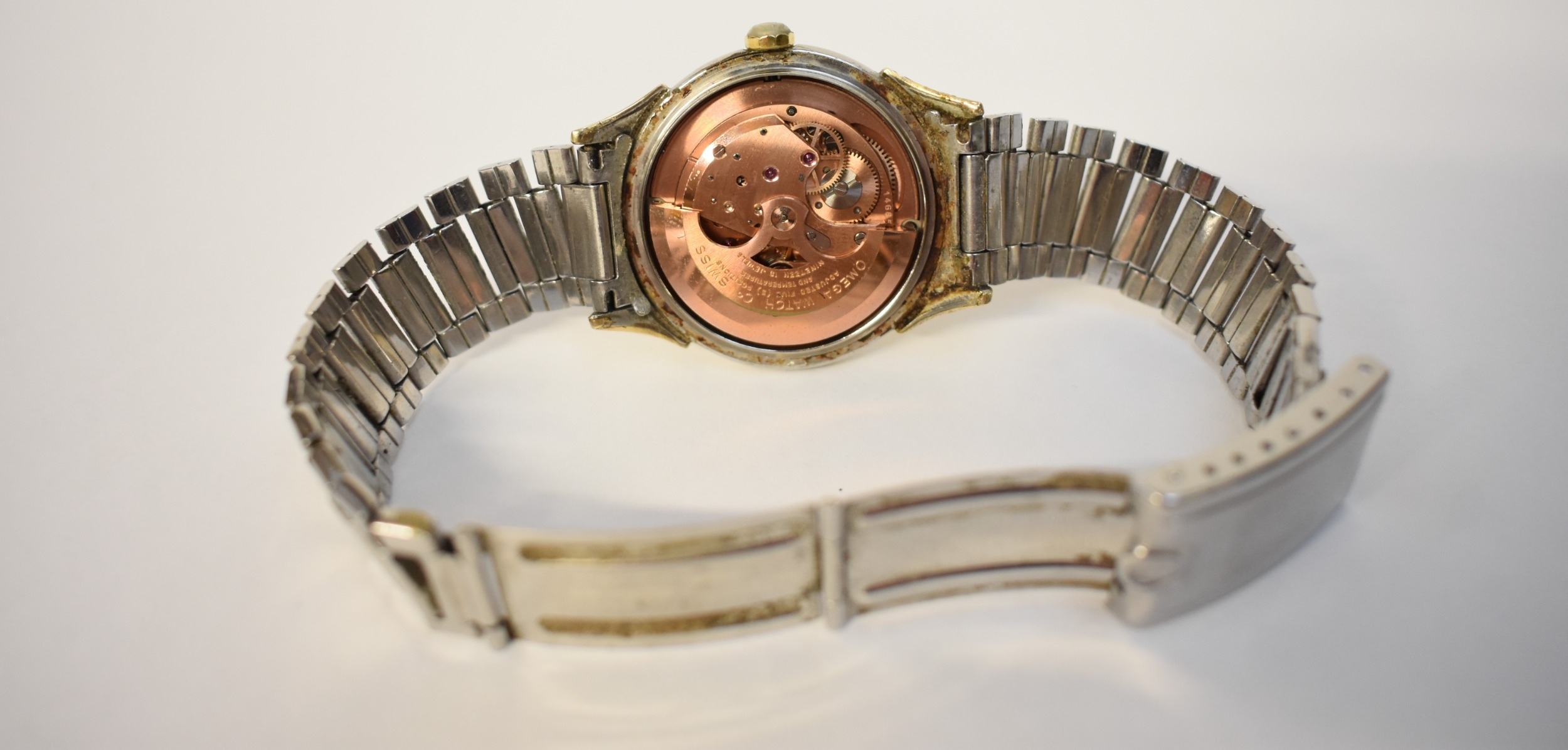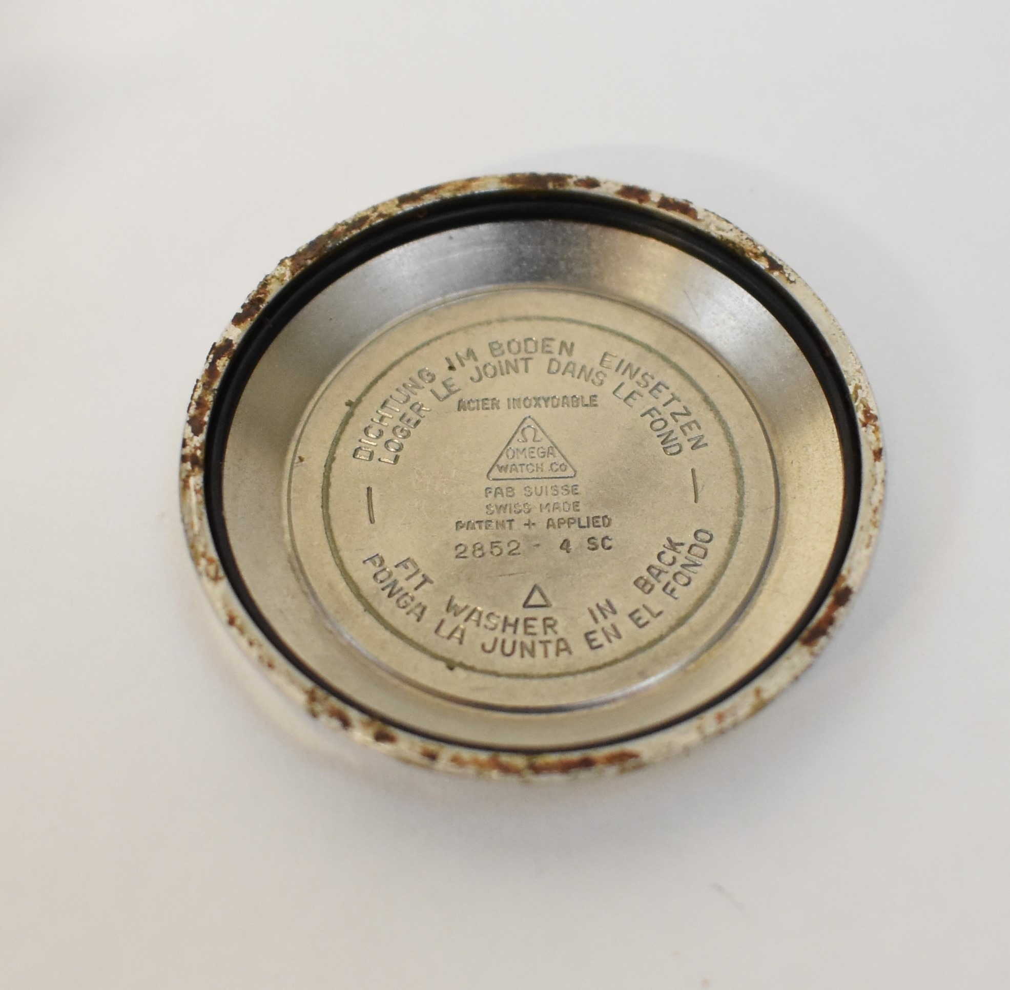 Scratching to glass cover with one larger scratch going across middle, dial is stained and in need of restoration, scratching across piece. Hands are moving and is ticking as of writing, unable to guarantee how long it will last or if it will keep good time