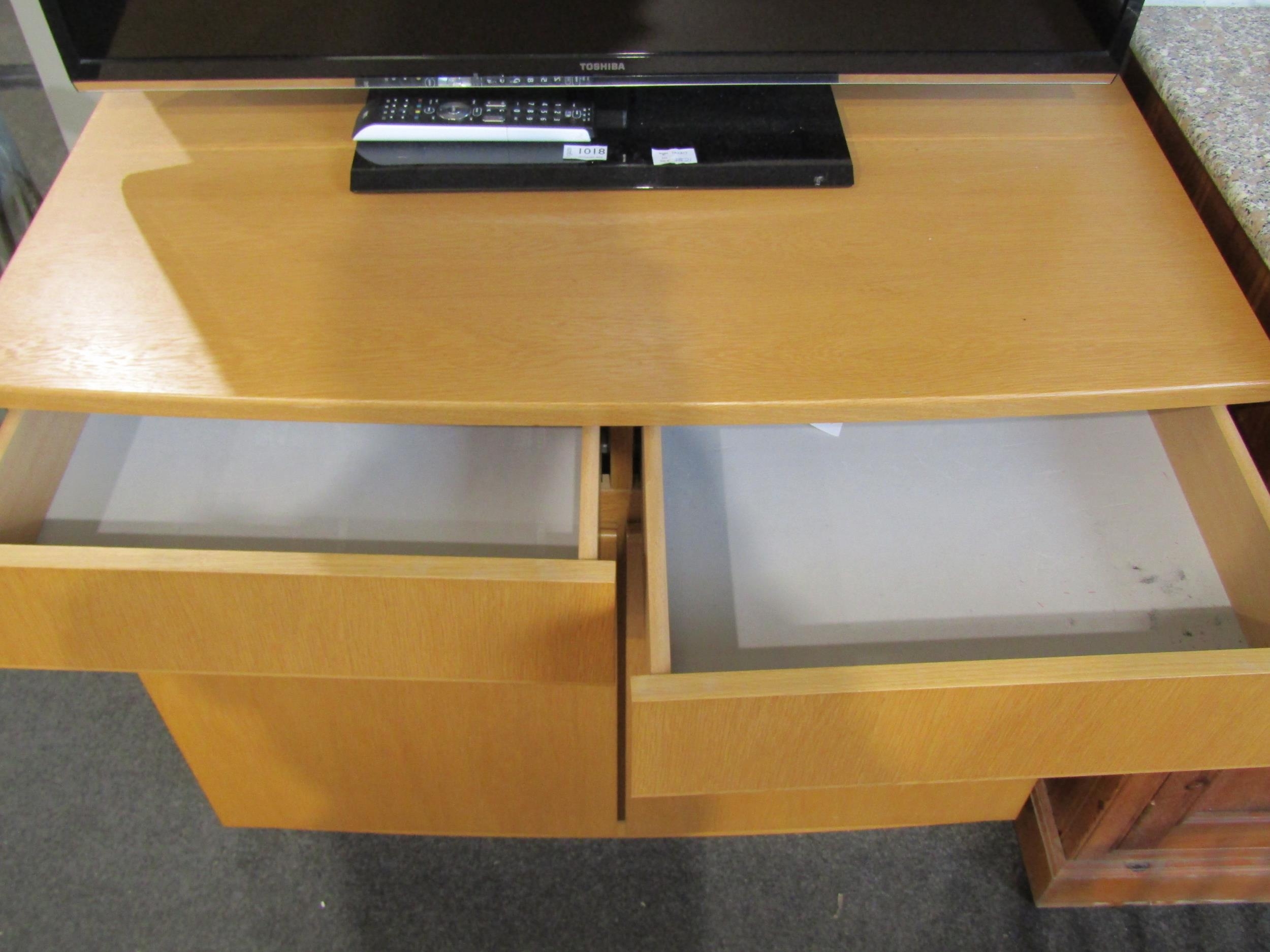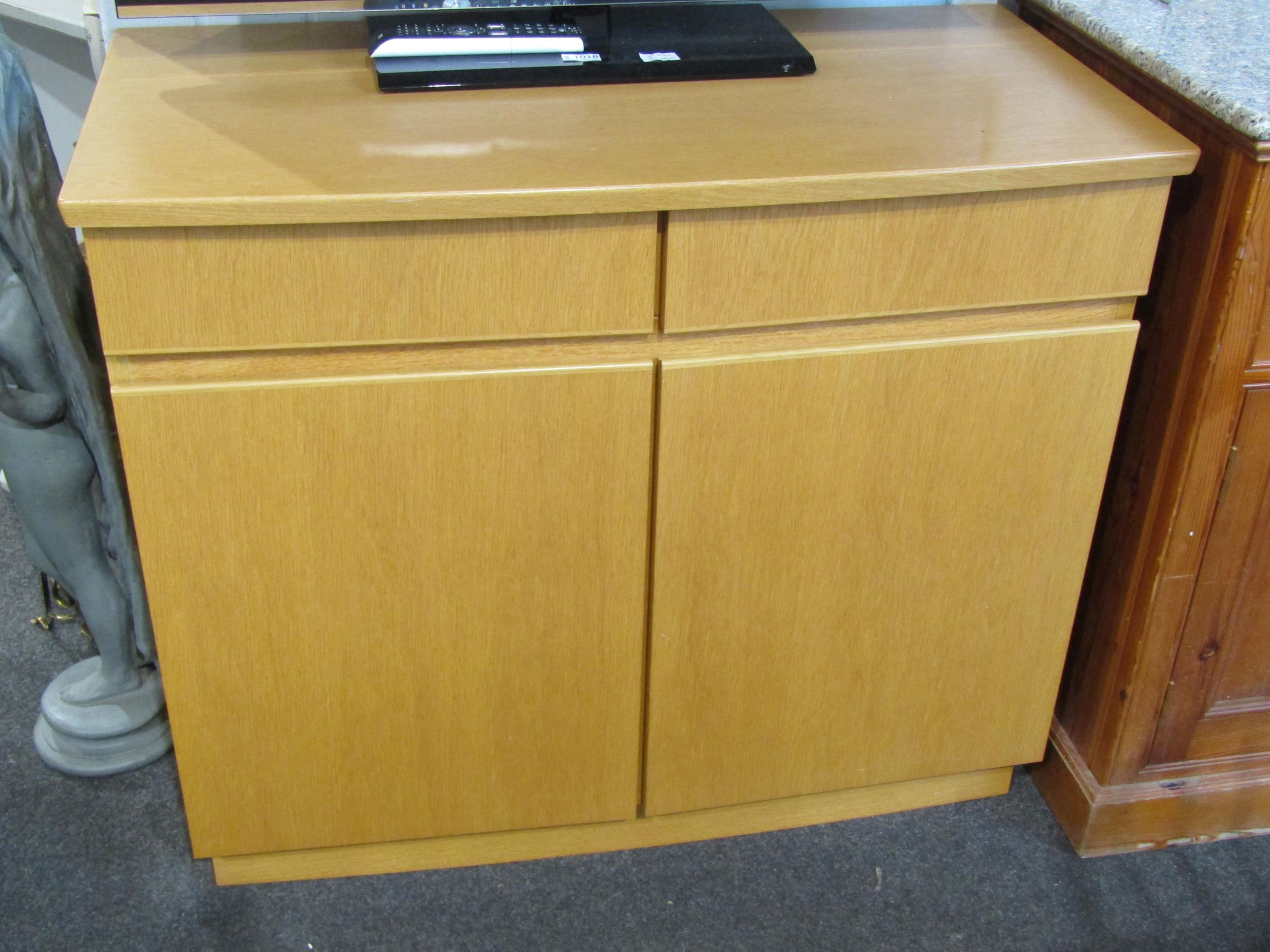 An oak sideboard with two drawers and soft close two door cupboard, 87cm tall x 101cm wide x 52cm deep