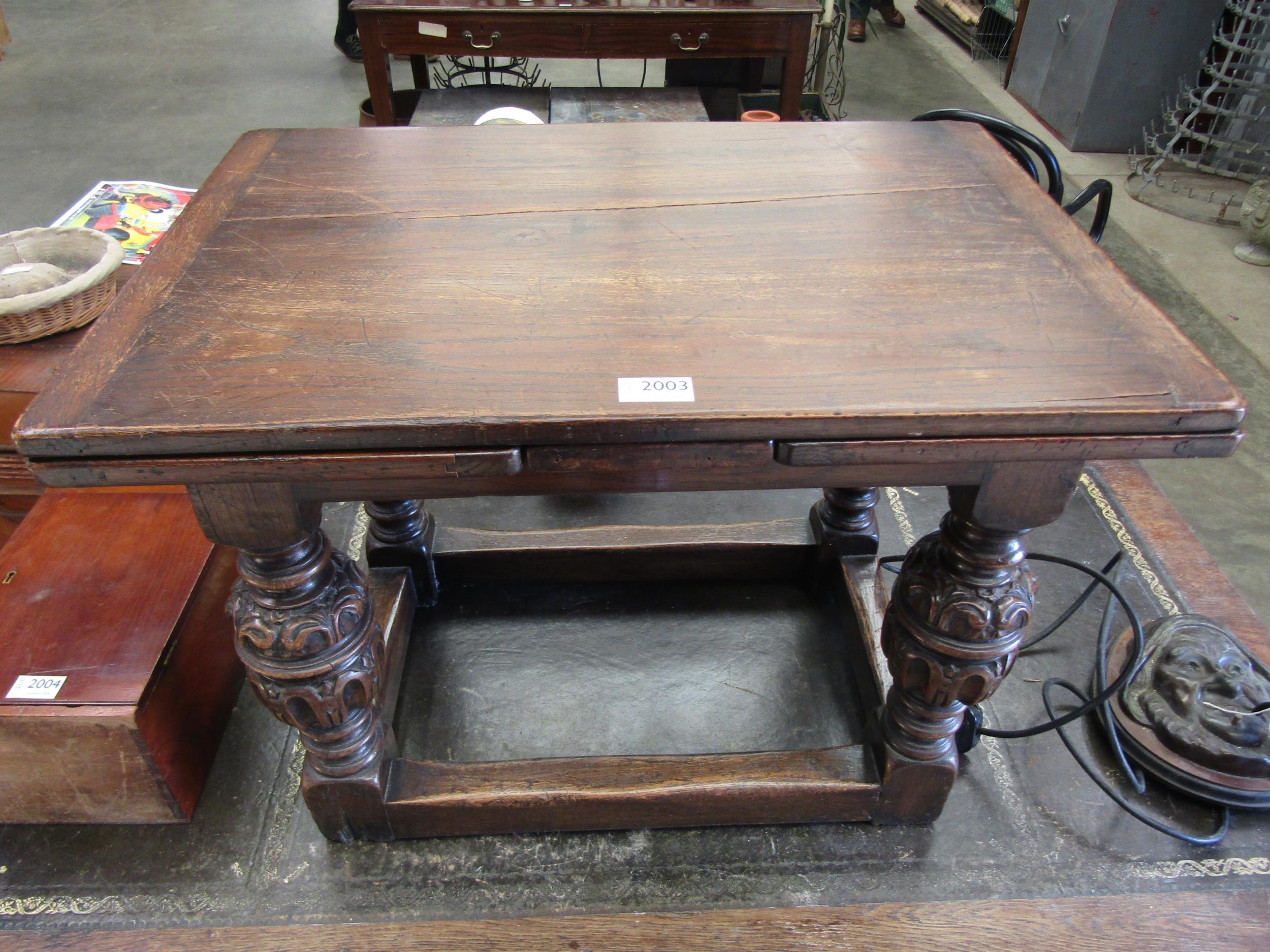 An oak small drawer leaf table on carved leg, 44cm x 63cm x 48cm (h)