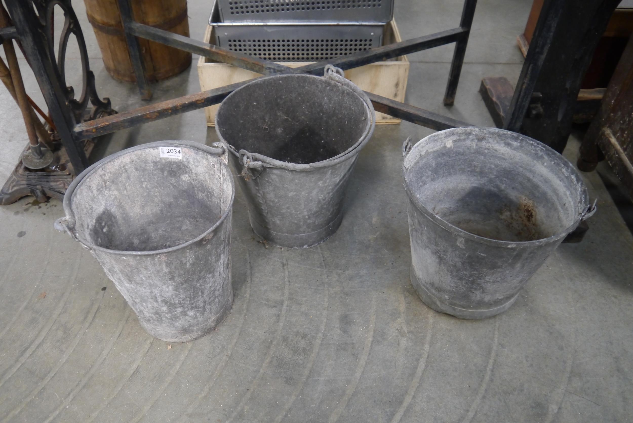 Three galvanised buckets