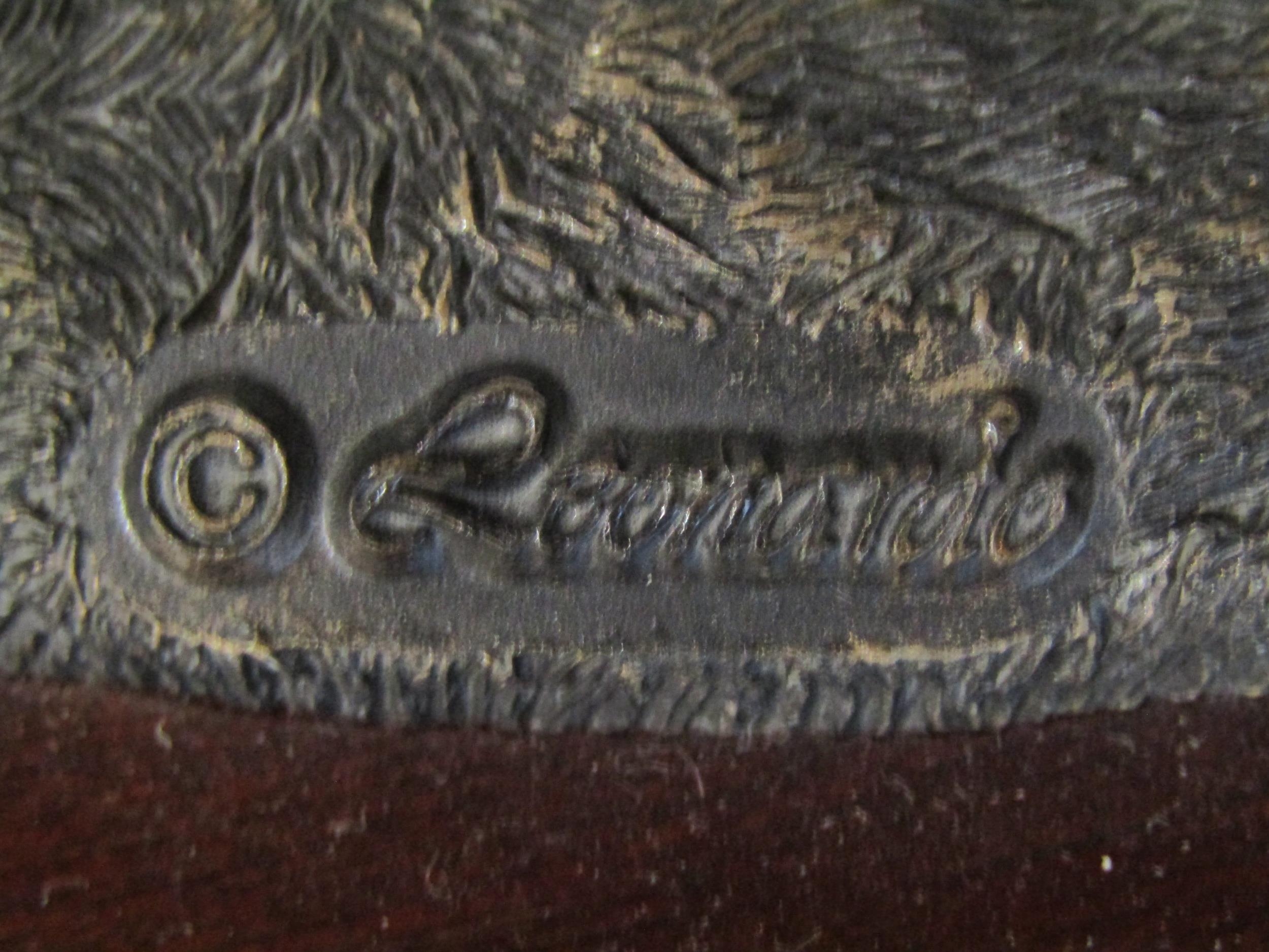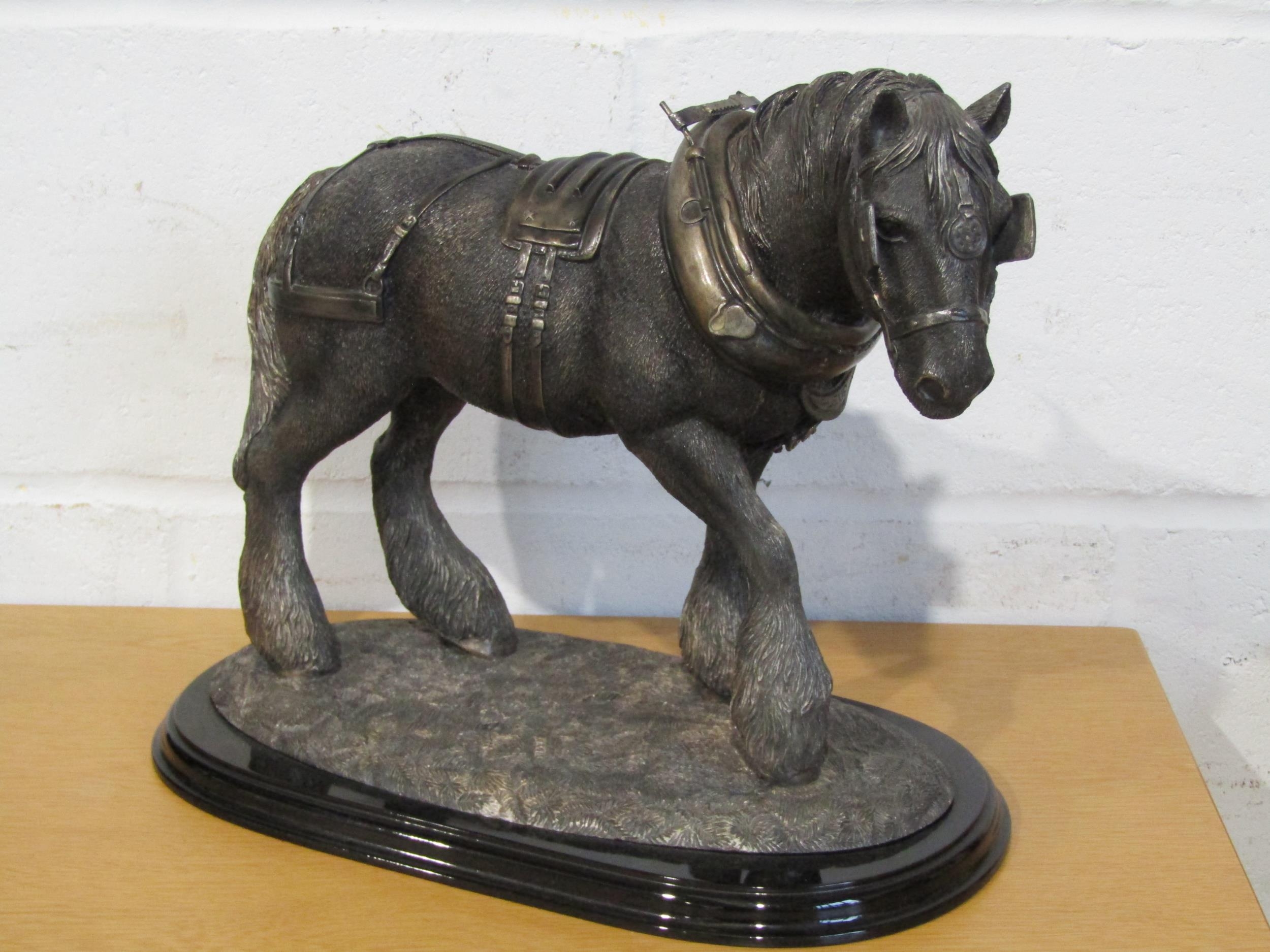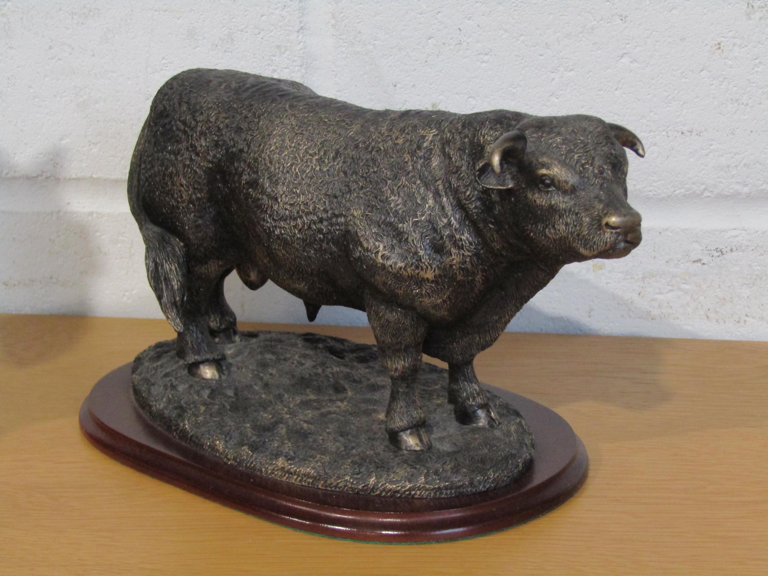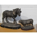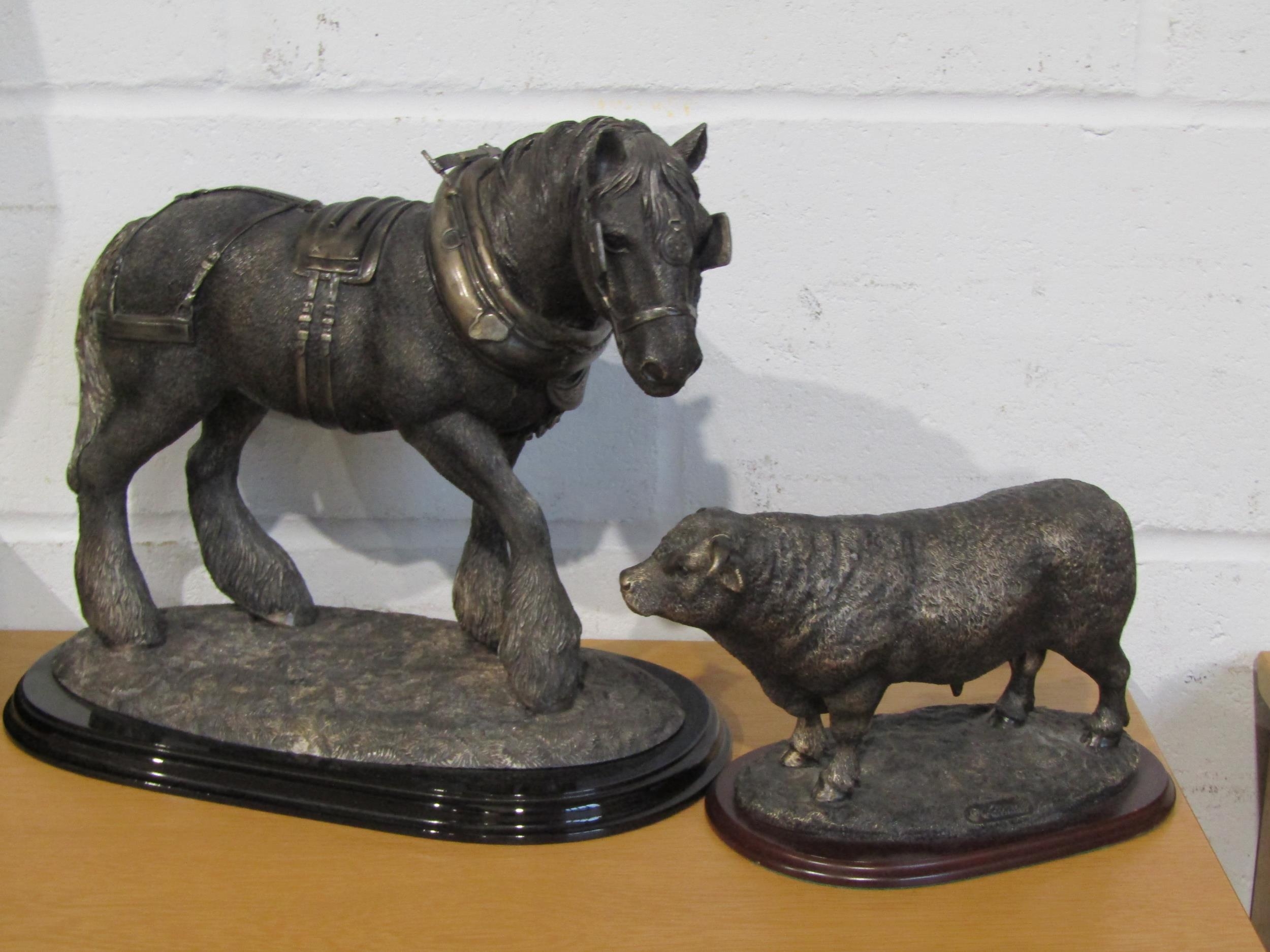 A Leonardo resin figure of a cart horse in bronze effect, 30cm tall, and a similar model of a bullock (2) Leonardo stamps to base/body