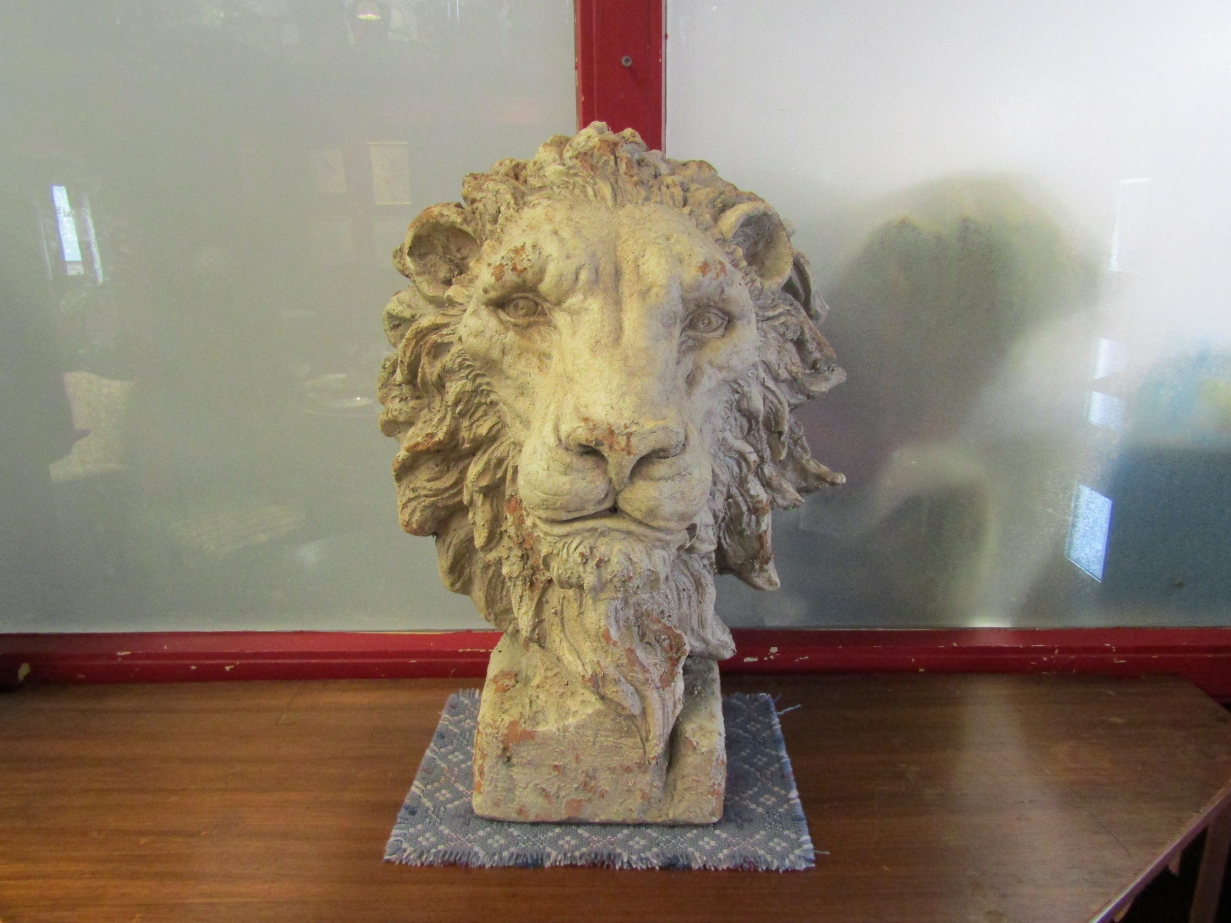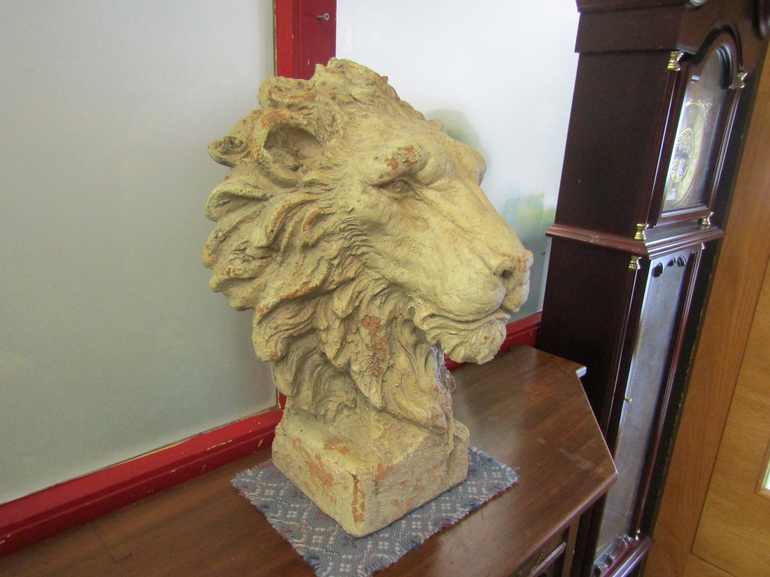 A reproduction terracotta effect Lion bust, 50cm tall