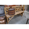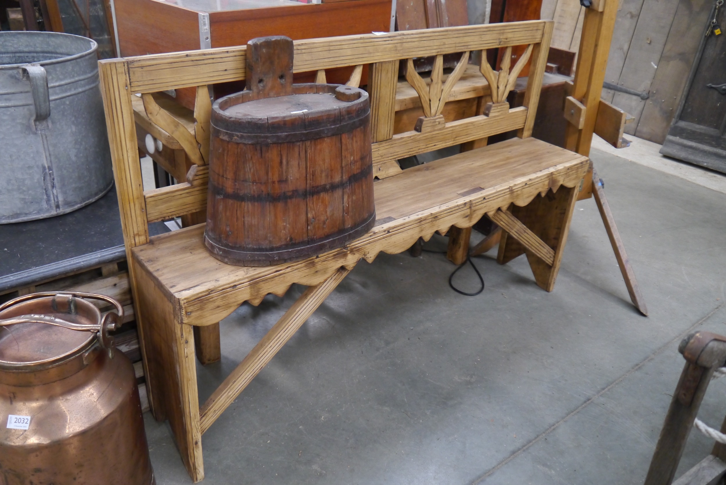 A small rustic pine bench 141cm wide
