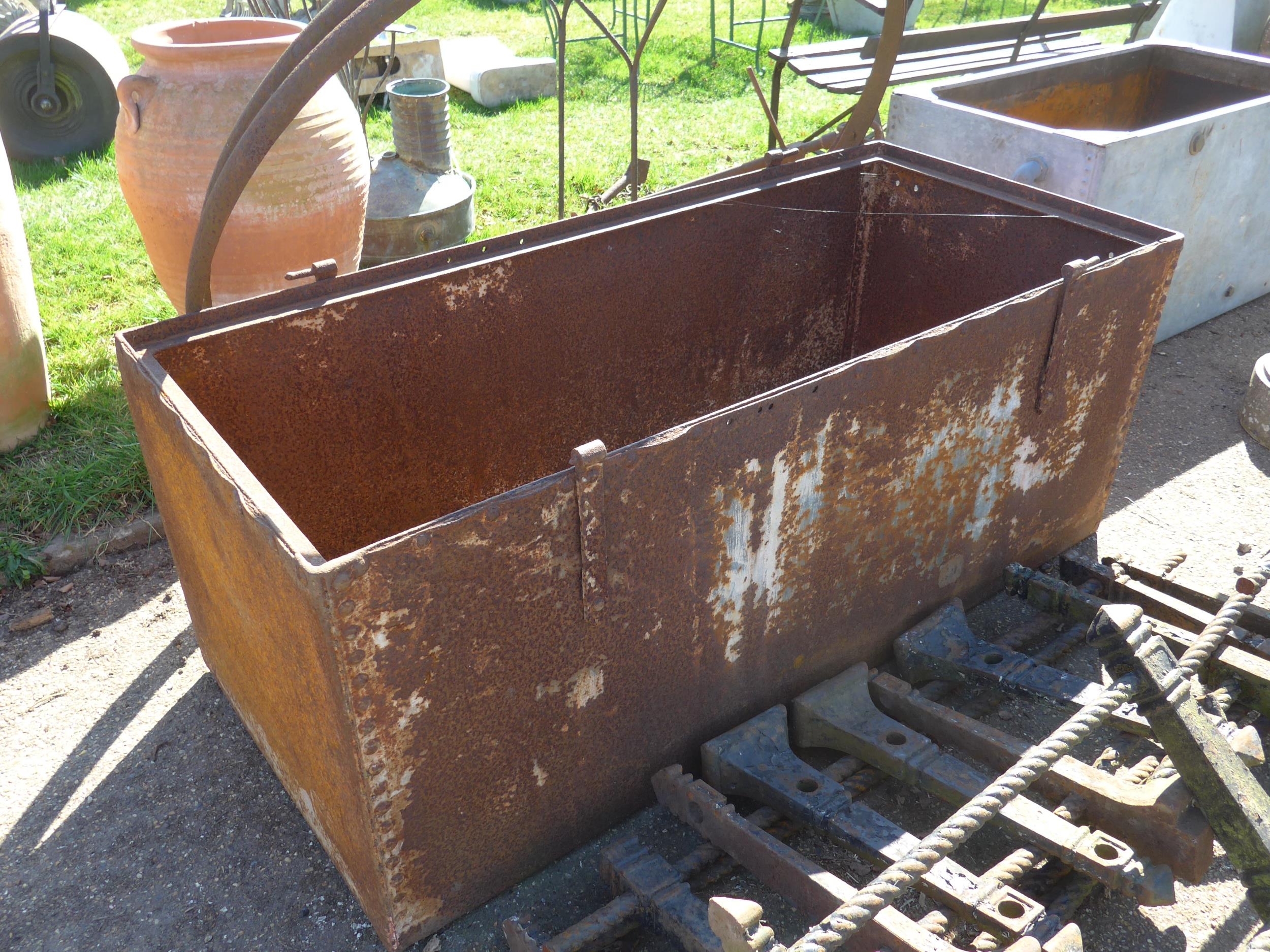 A riveted galvanised tank, 153cm x 68cm x 62cm