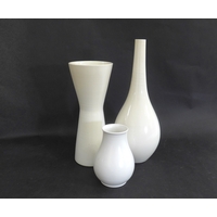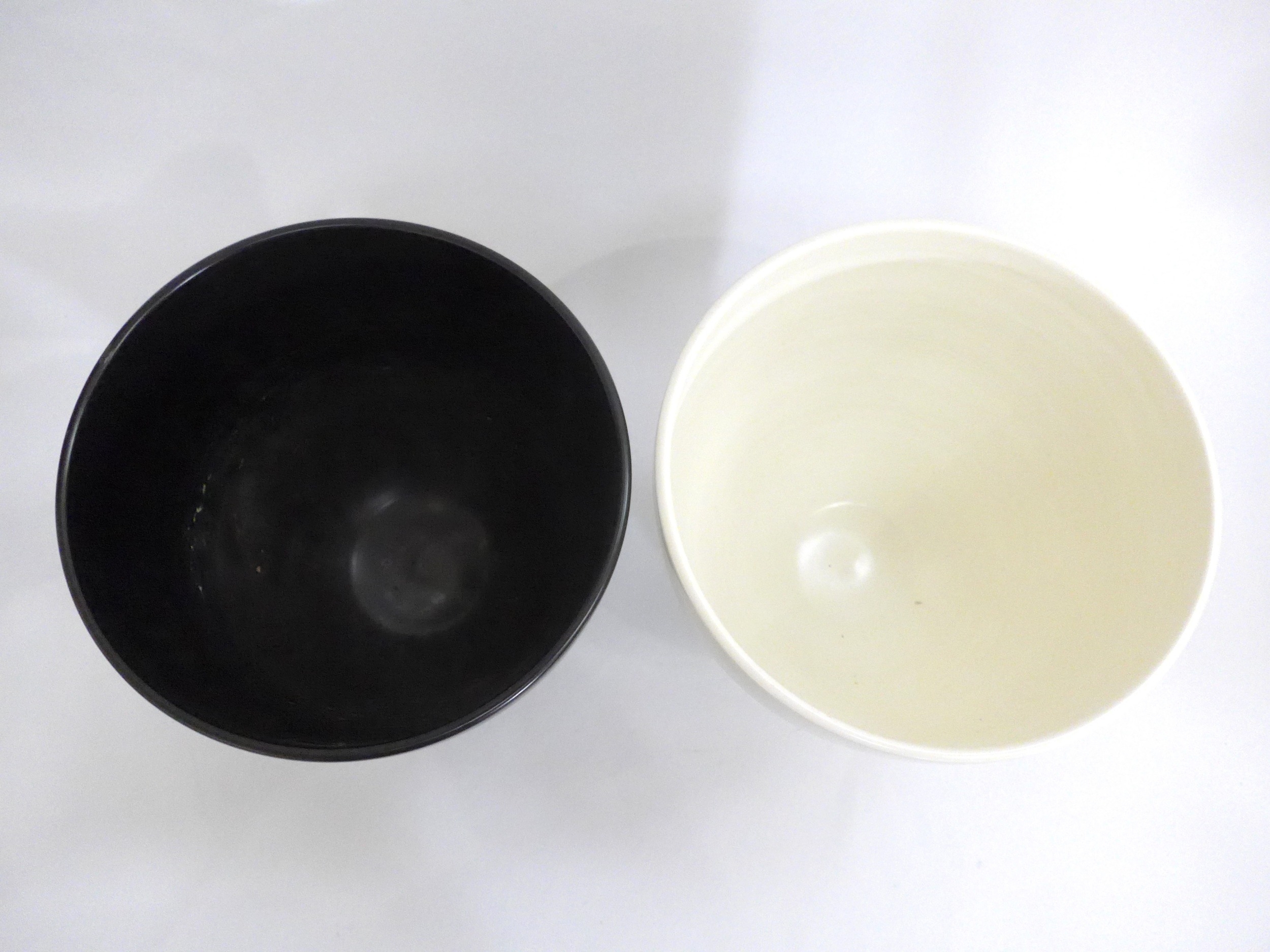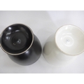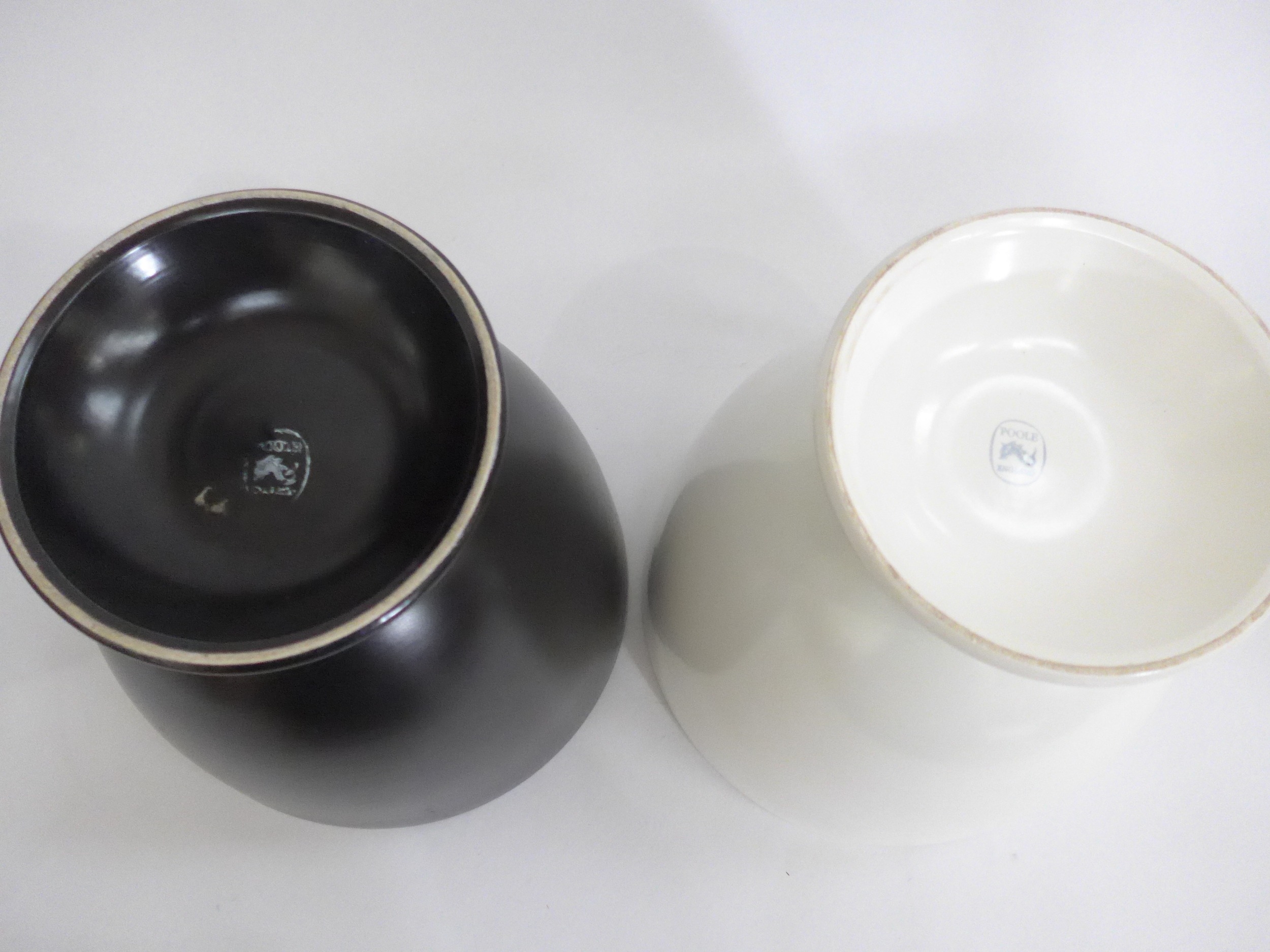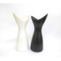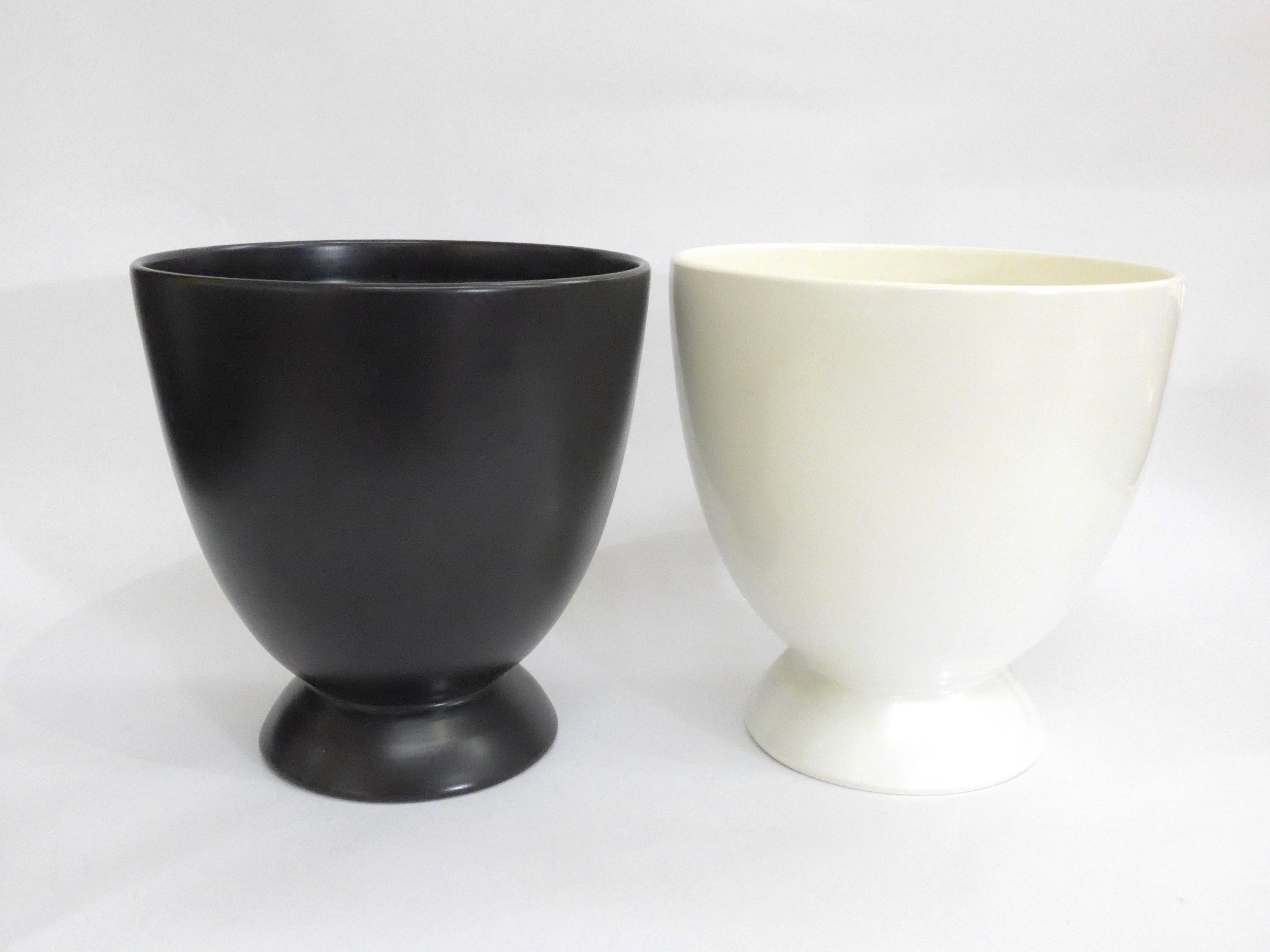 Two Poole Freeform pedestal planters designed by Alfred Read & Guy Sydenham, shape 721, one in Black Panther glaze, one white. 'Dolphin' backstamps to both. 23cm high