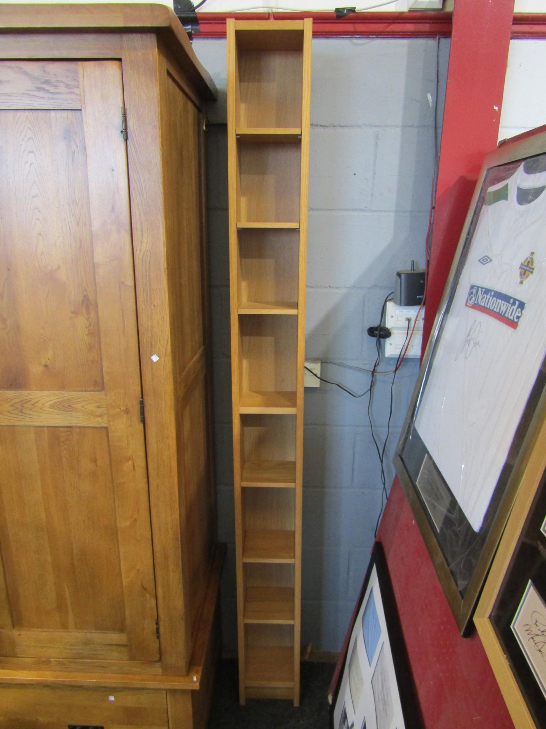 A tall slender CD rack, 203cm tall