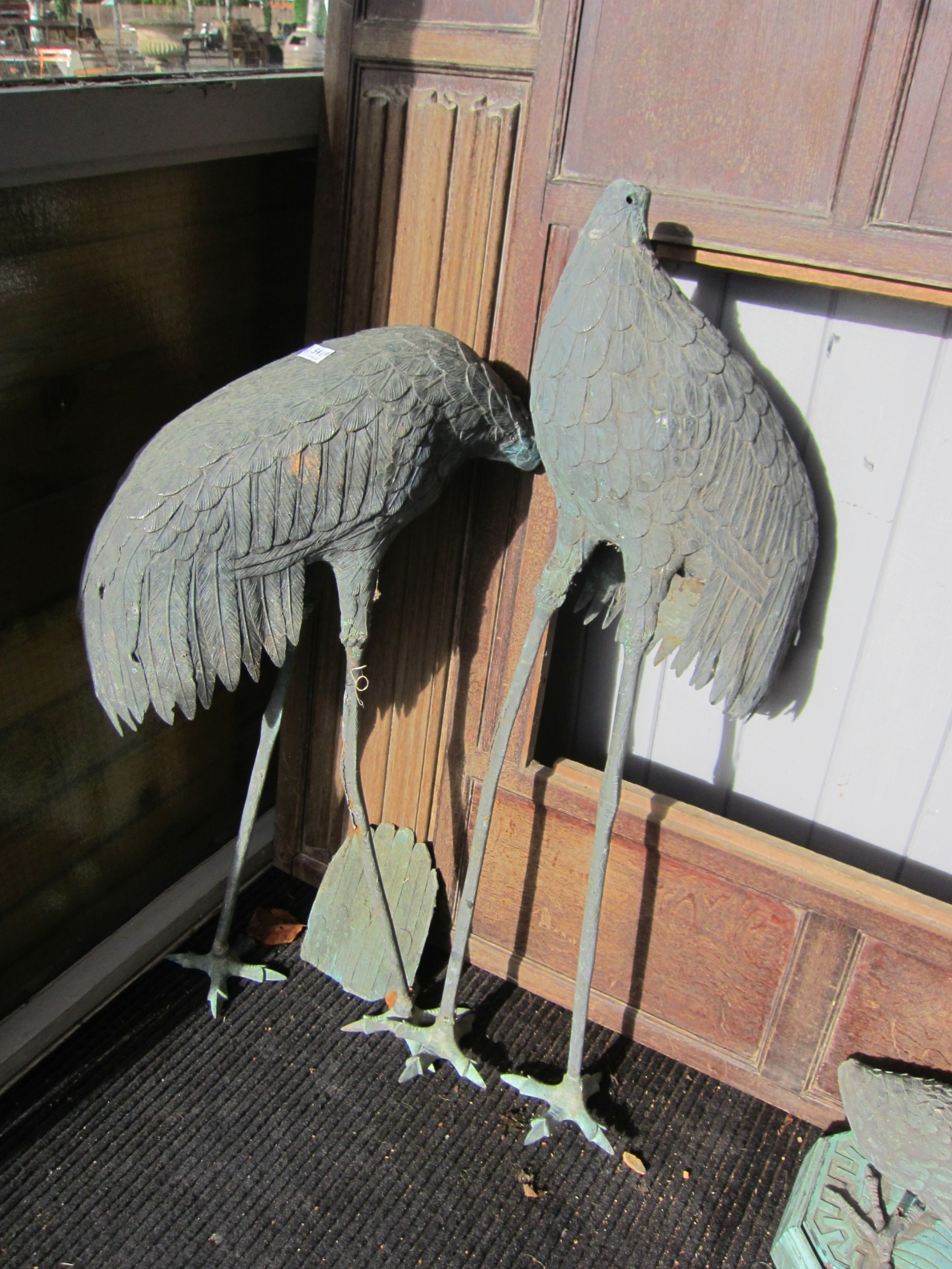 A pair of 19th Century bronze Meiji cranes a/f, heads missing