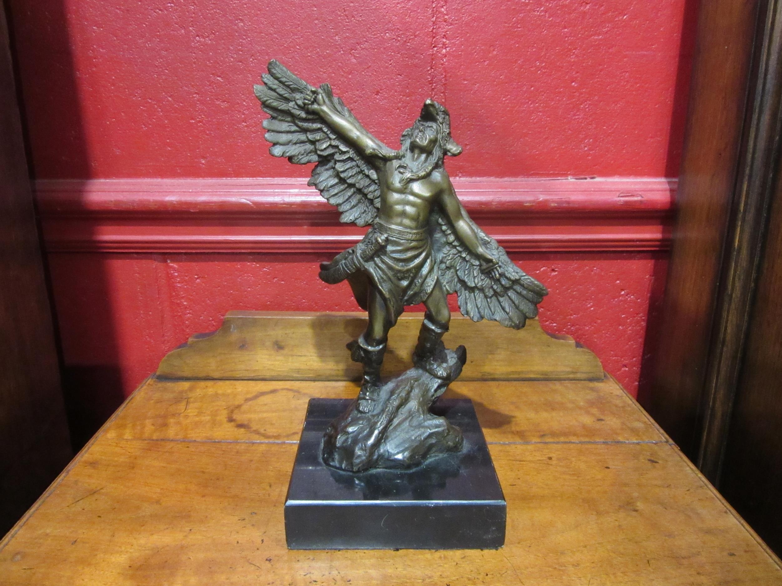 A circa 1970's bronze of a native American on slate plinth, ...