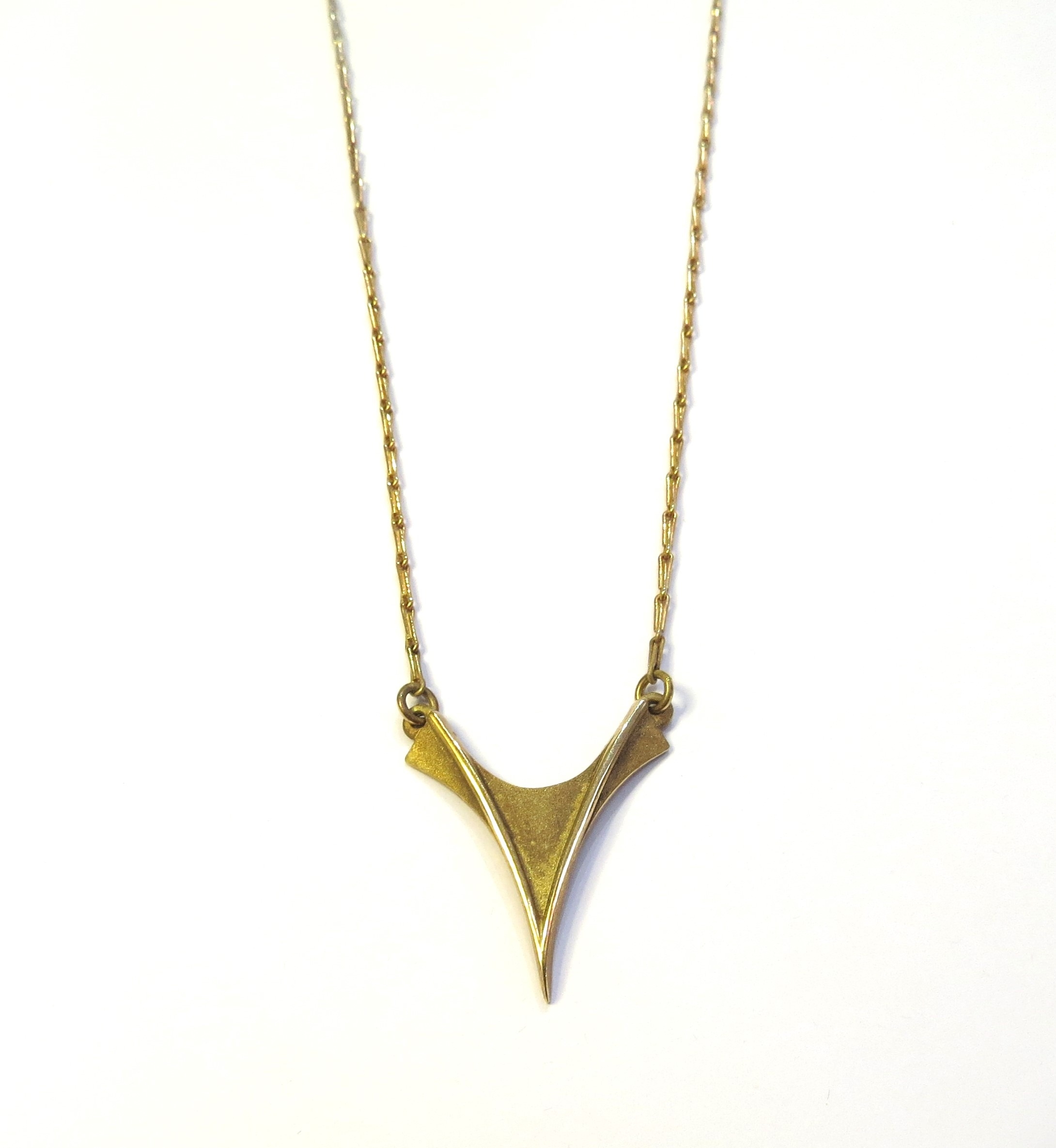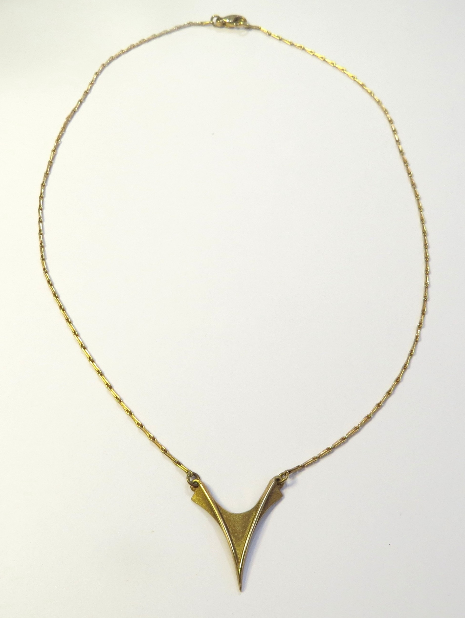 An 18ct gold neckchain hung with an abstract pendant designed by Sandy Menzies, 43.5cm long, 6.6g