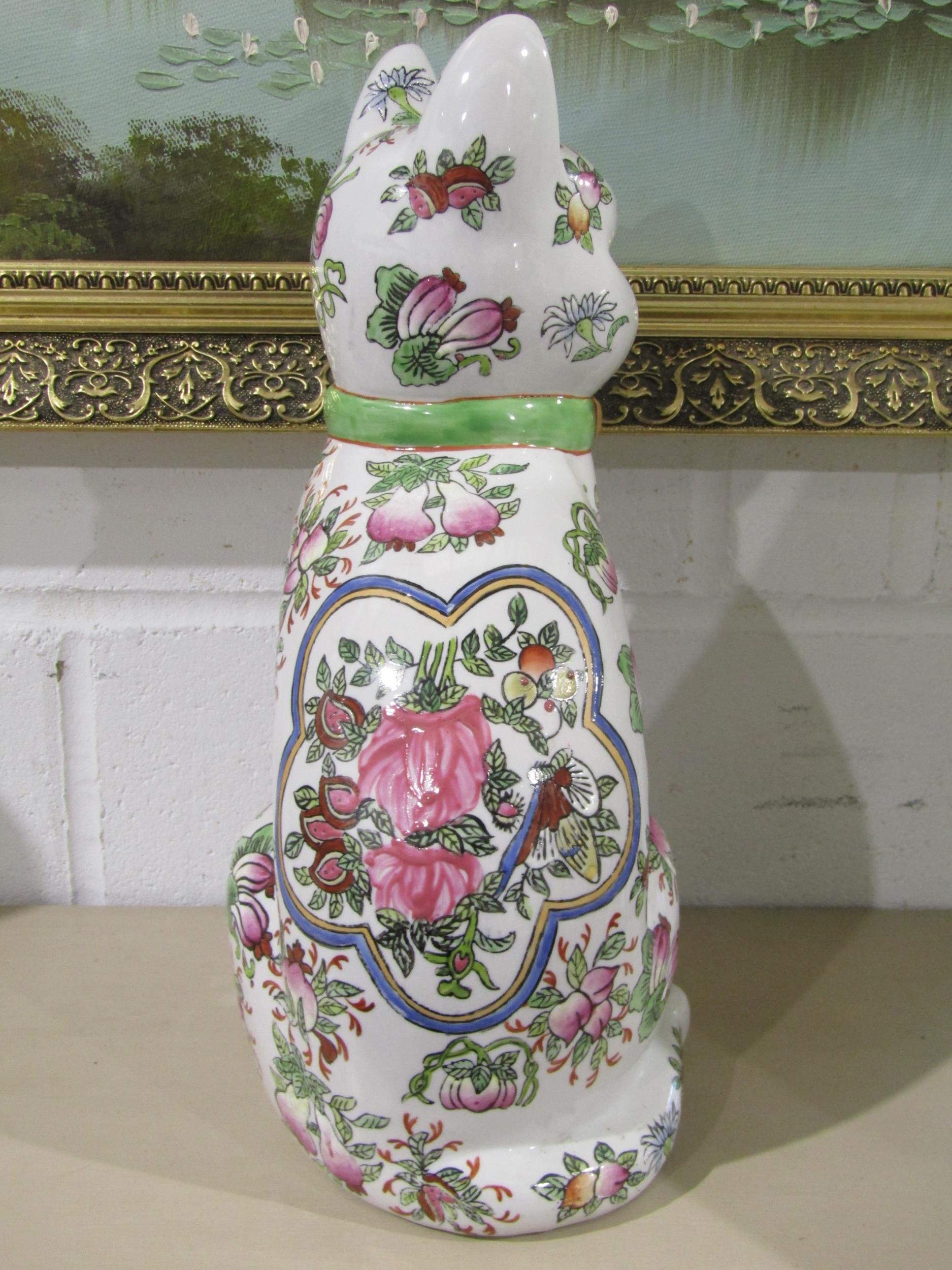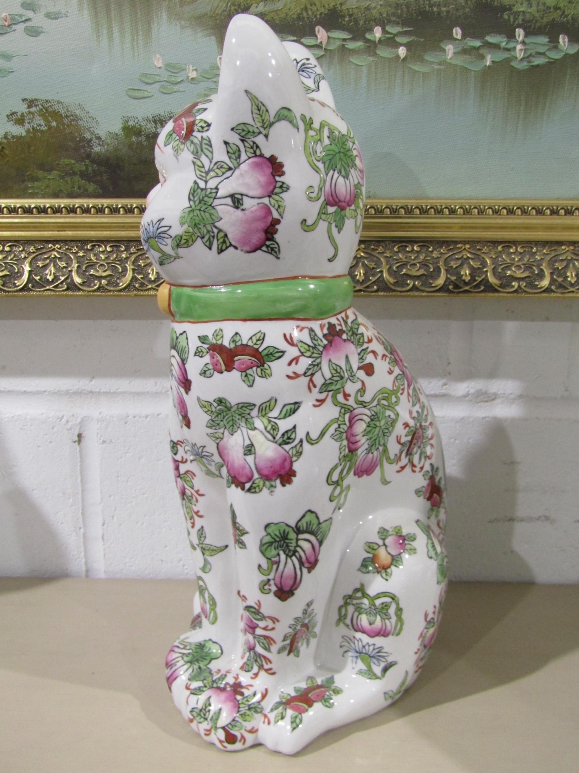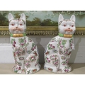 A pair of 20th Century Oriental ceramic seated cats with all-over floral design, character marks to bases, 34cm tall