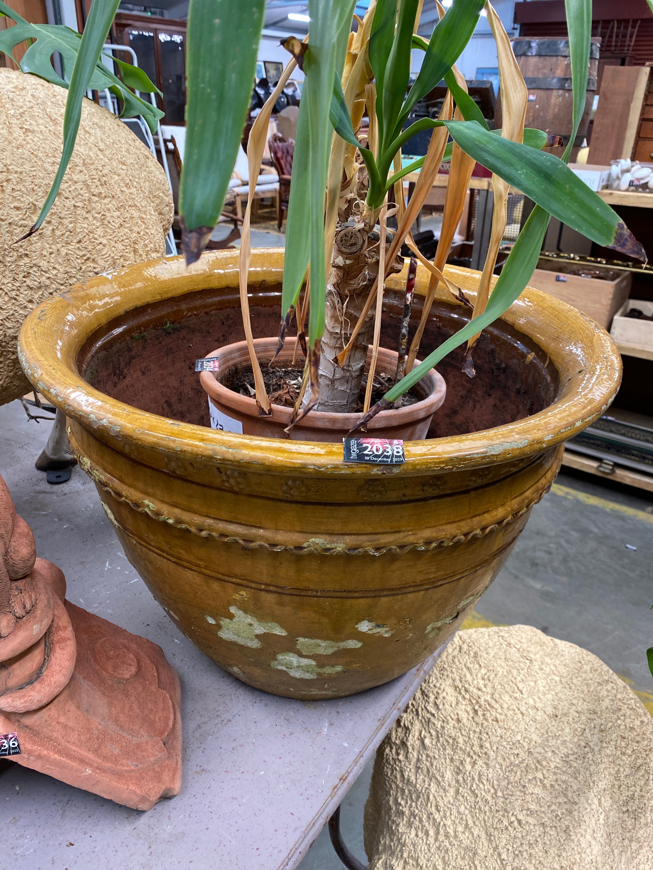 A glazed plant pot 56 cm diameter x 40cm tall