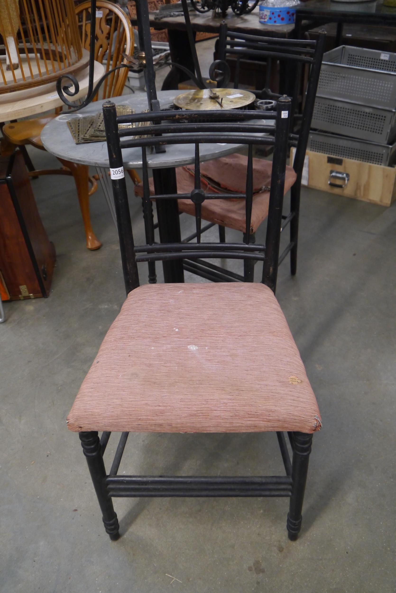 A pair of "William Morris" ebonised side chairs for re-upholstery