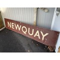 A brown enamel BR (W) 'Newquay' railway platform sign, 290cm x 61cm