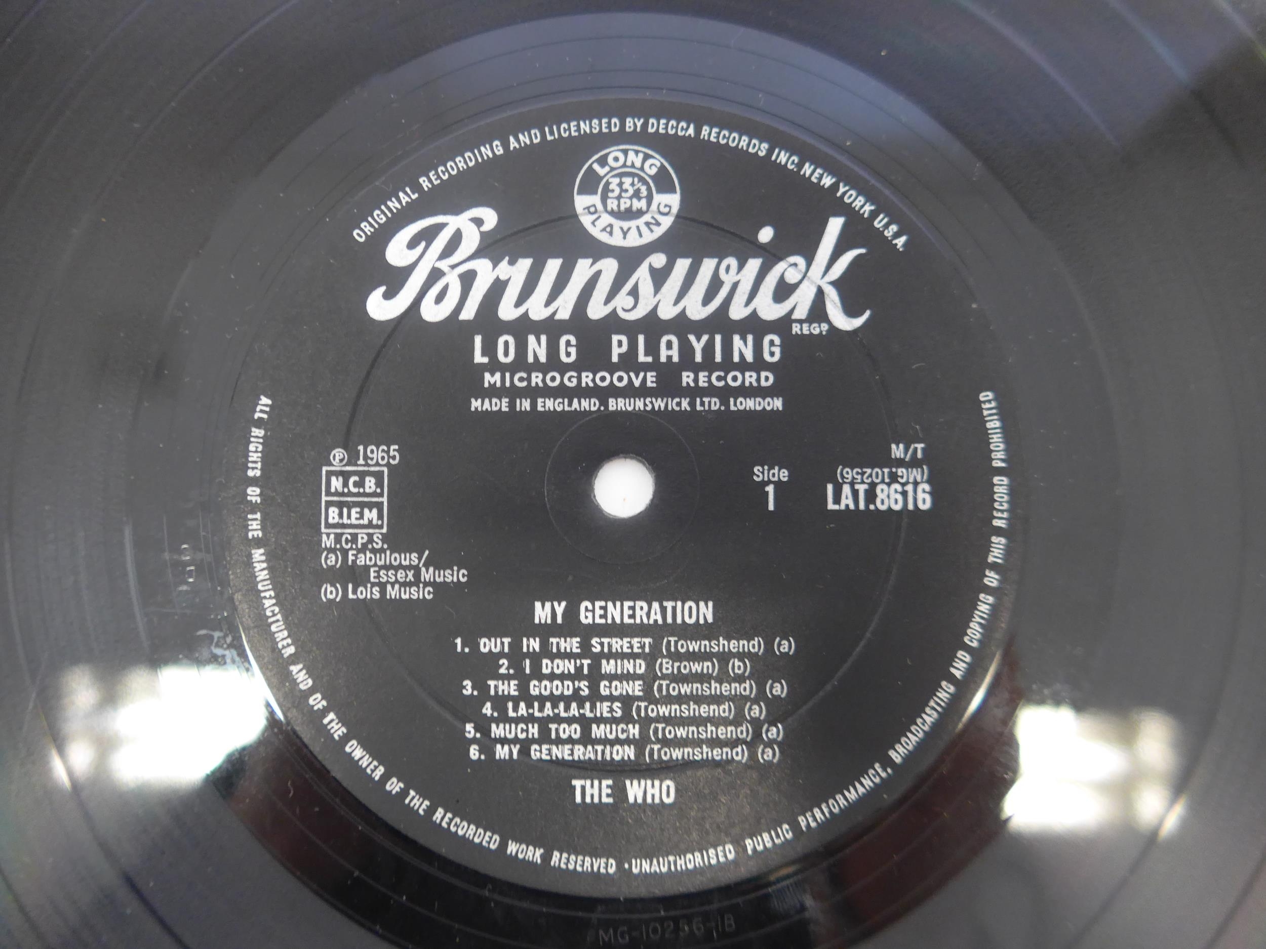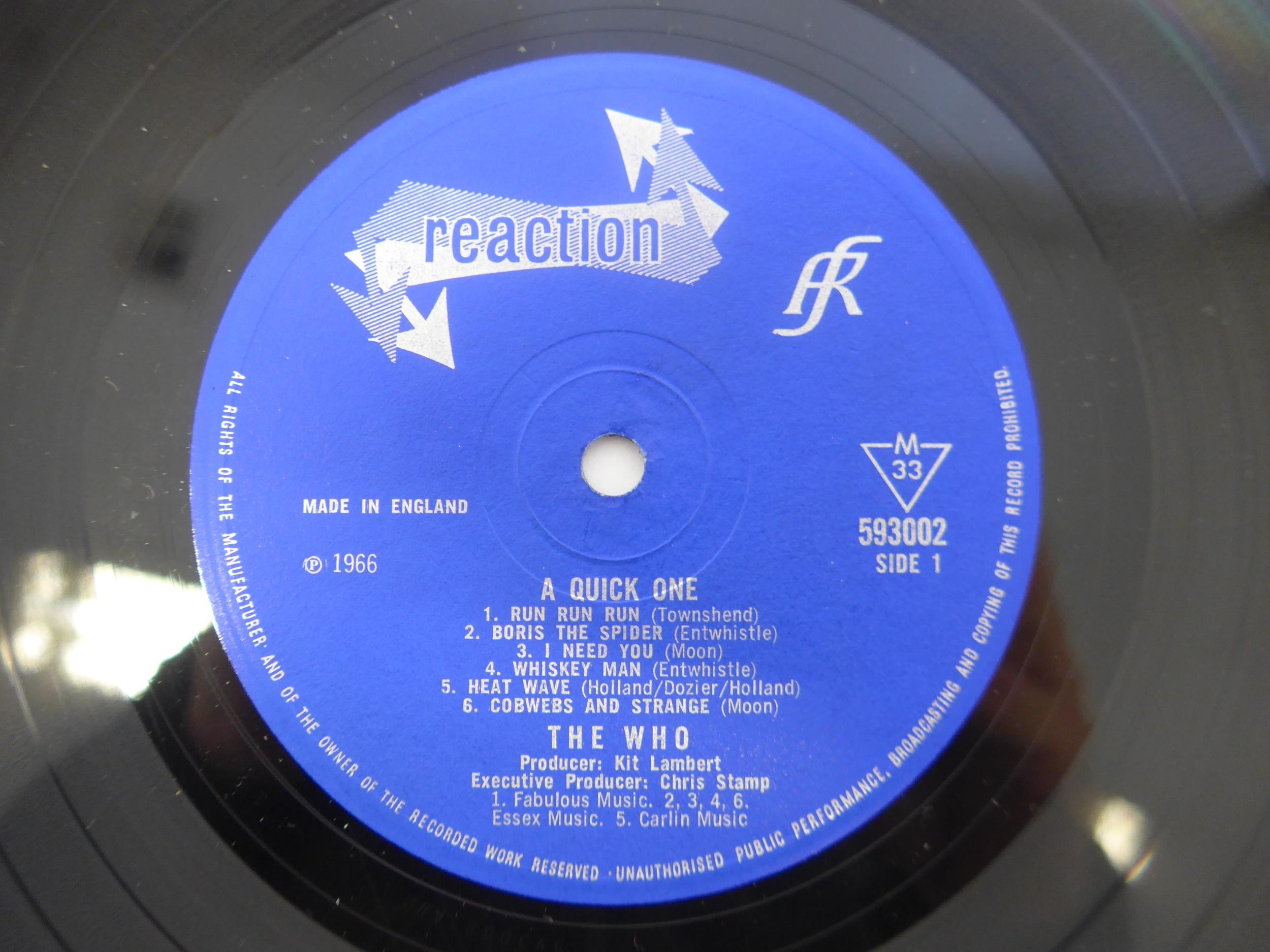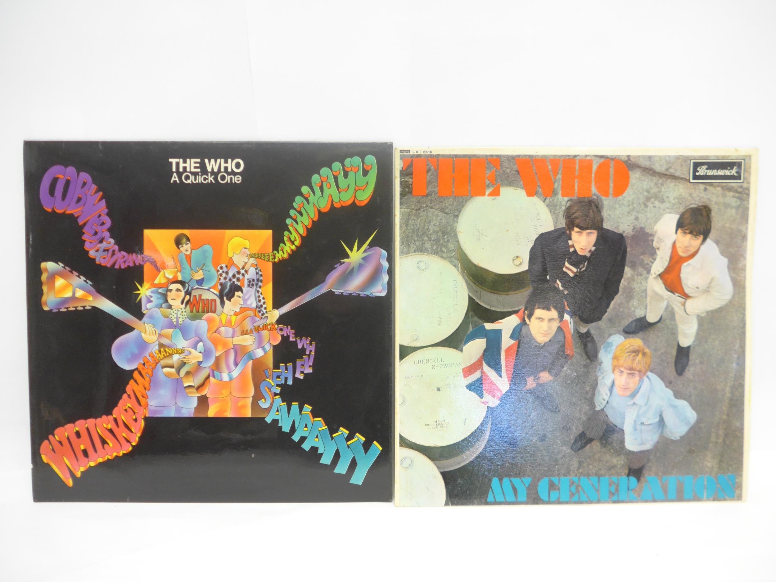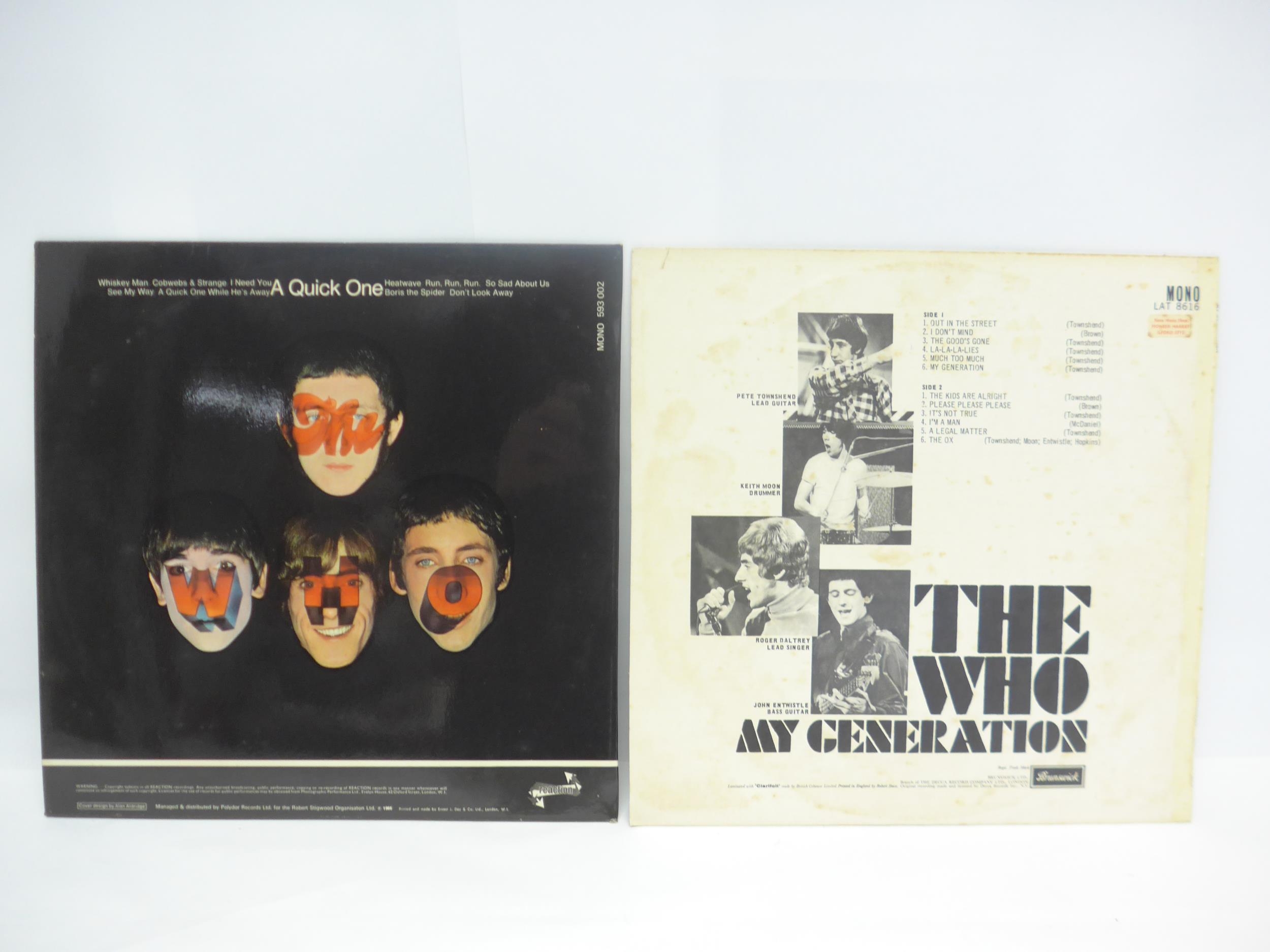 THE WHO: Two LPs to include 'My Generation' original 1965 UK mono pressing (Brunswick LAT 8616, vinyl VG-, some foxing and original shop sticker to back cover, sleeve otherwise VG+), and 'A Quick One' original 1966 UK mono pressing (Reaction 593 002, vinyl a strong VG nearing VG+, sleeve EX)