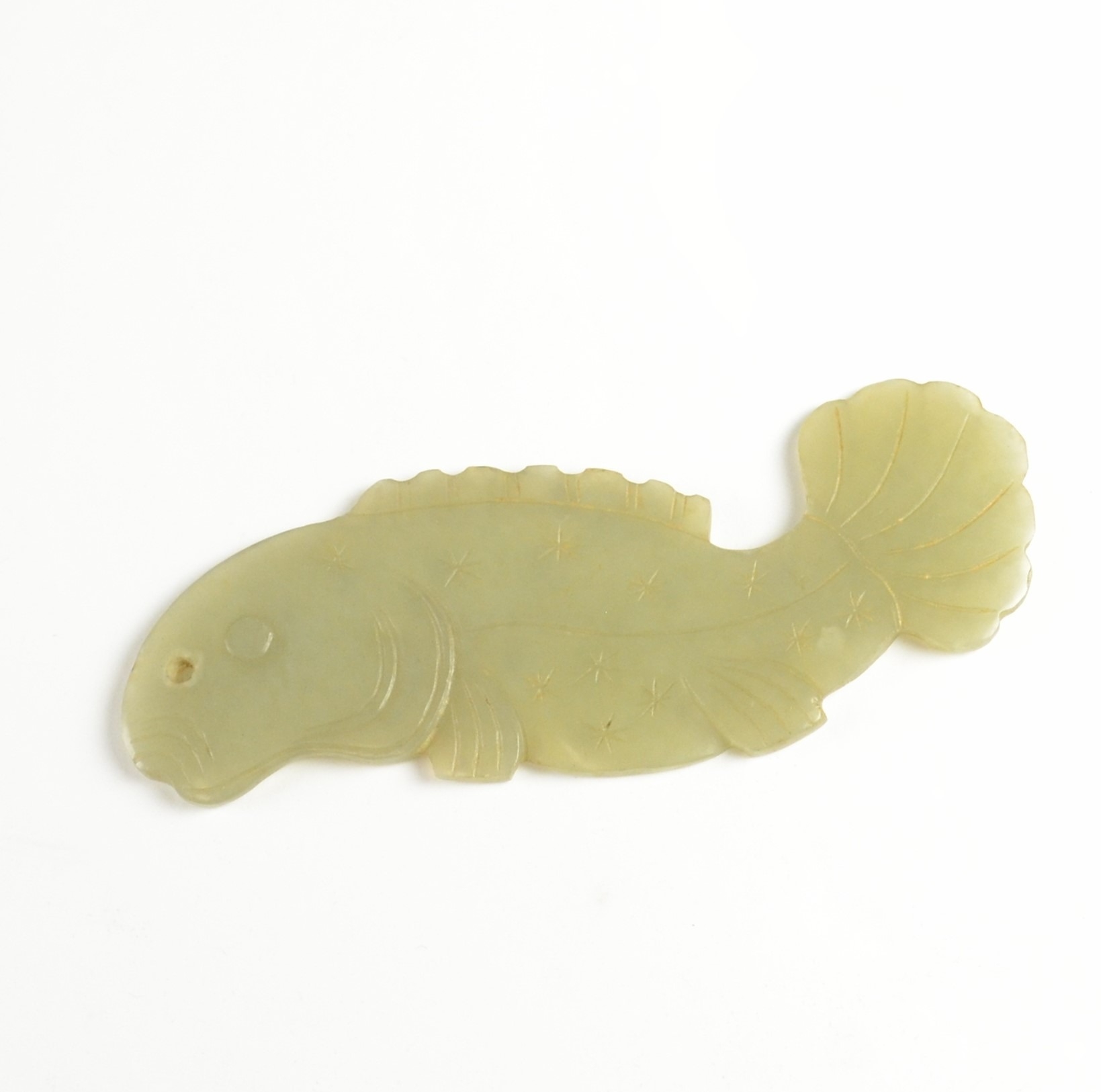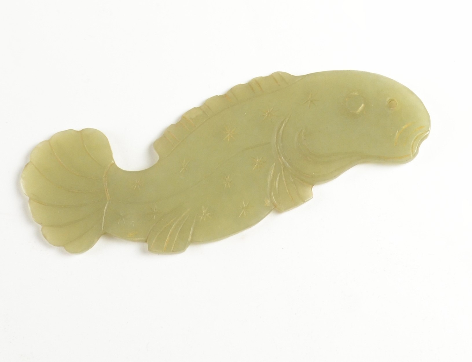 A Chinese jade 'fish' plaque 9.3cm wide Provenance Henry P...