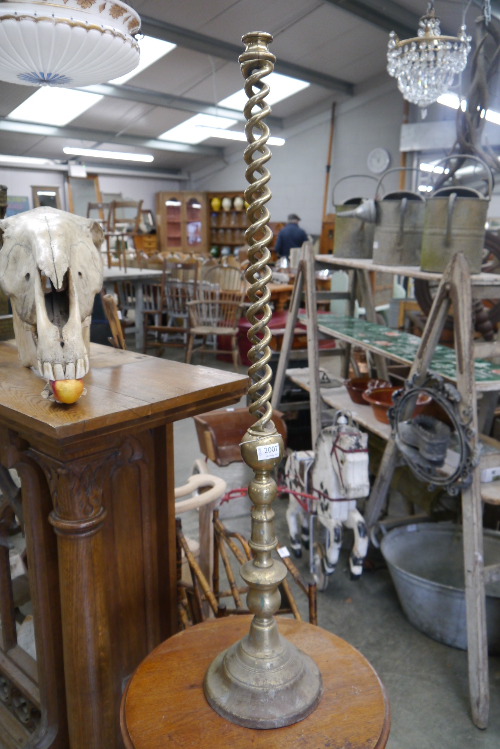A brass open barleytwist candlestick lamp 3' tall