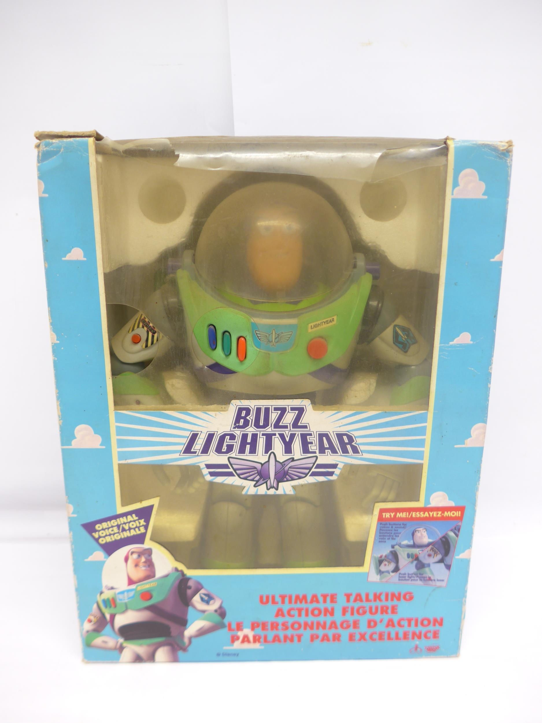 A boxed Thinkway battery operated Buzz Lightyear Ultimate Talking Action figure (tear to box window, some storage wear to box)