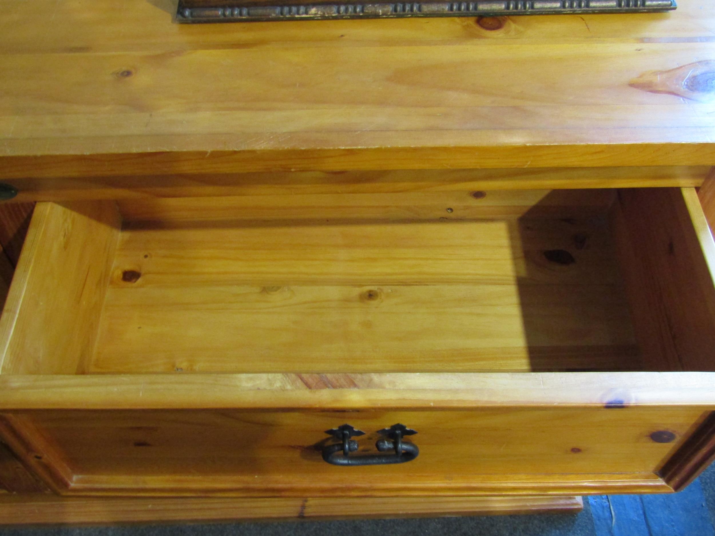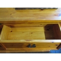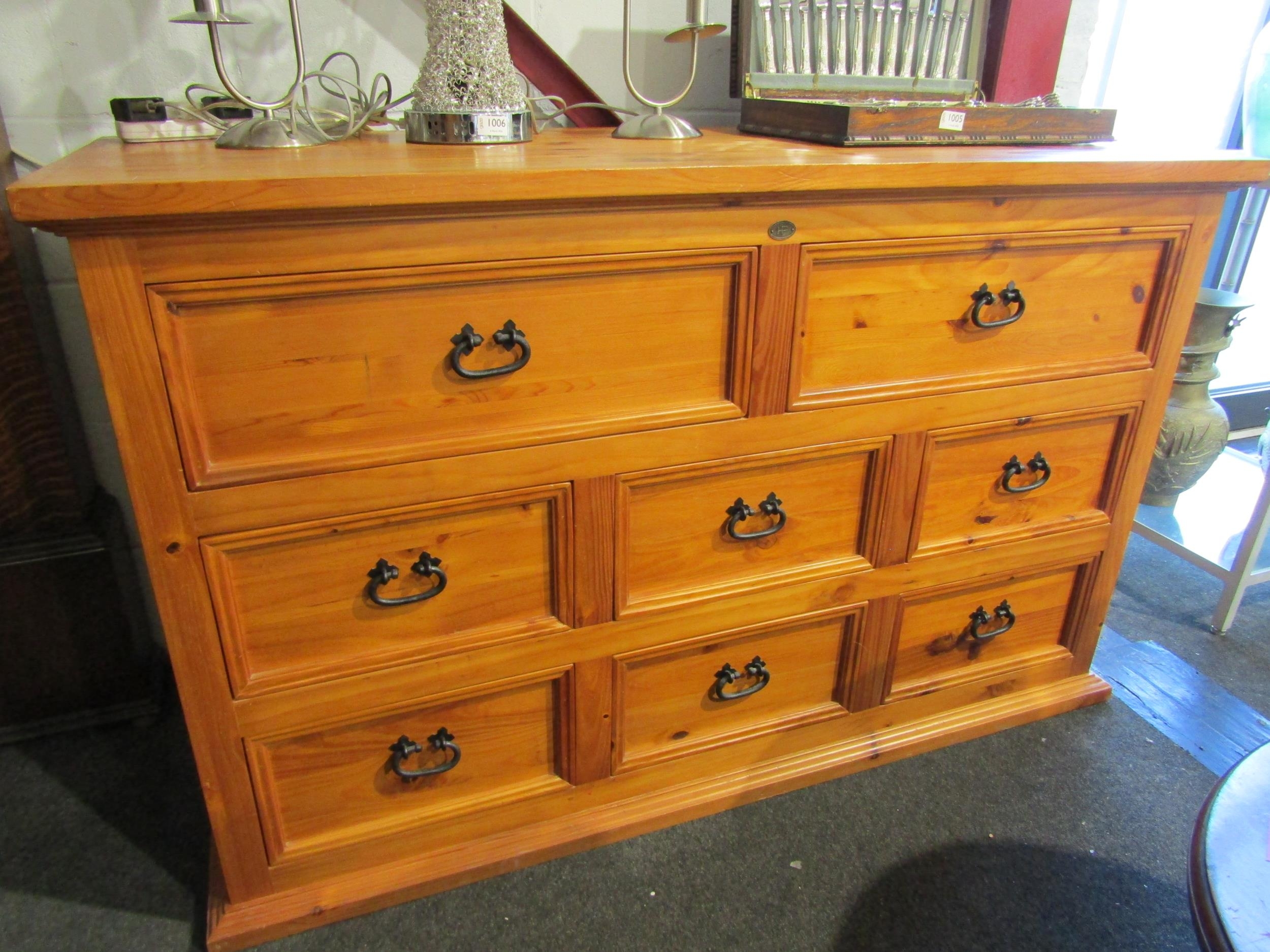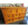 A modern oak chest of eight drawers on plinth base, 91cm tall x 145cm wide x 58.5cm deep