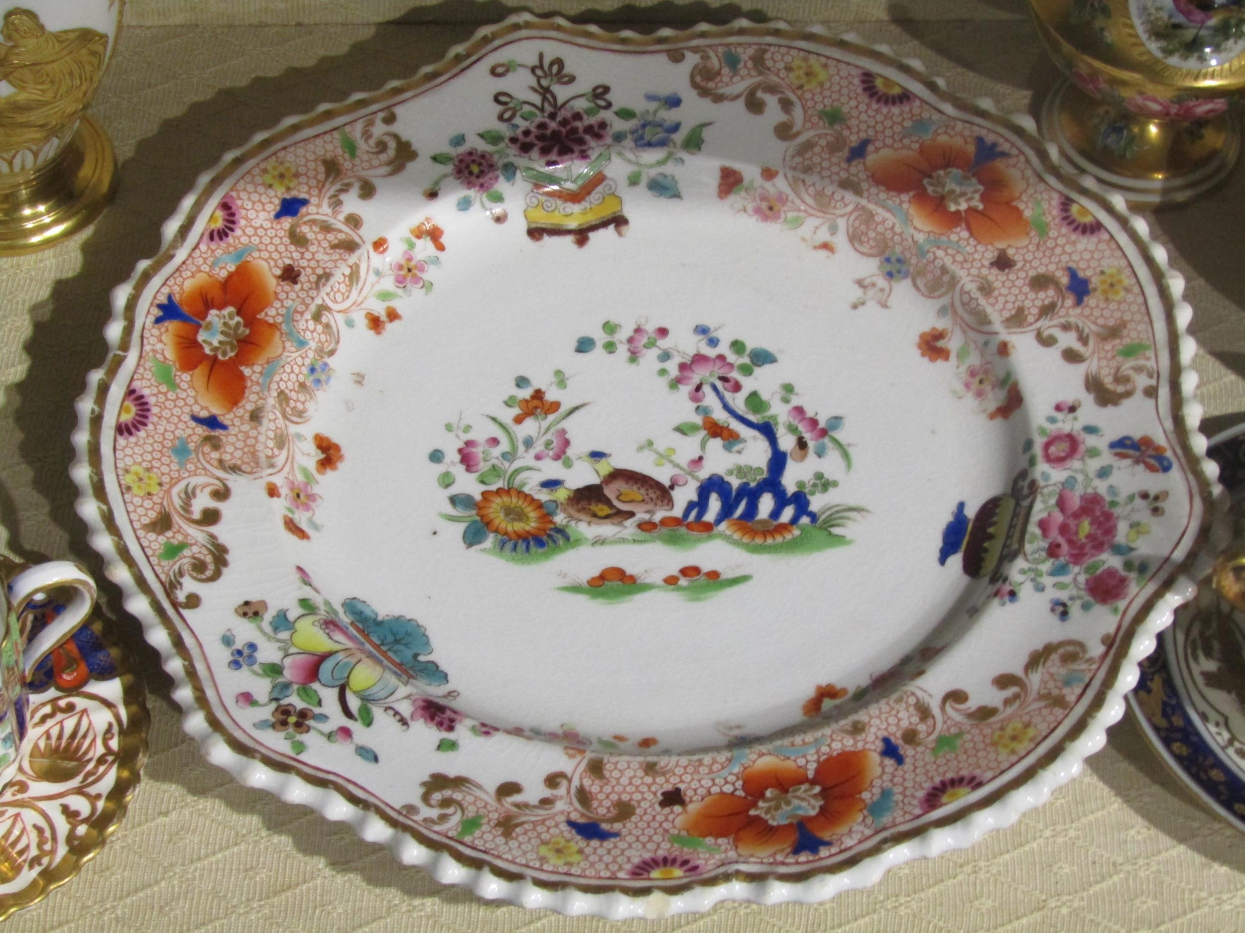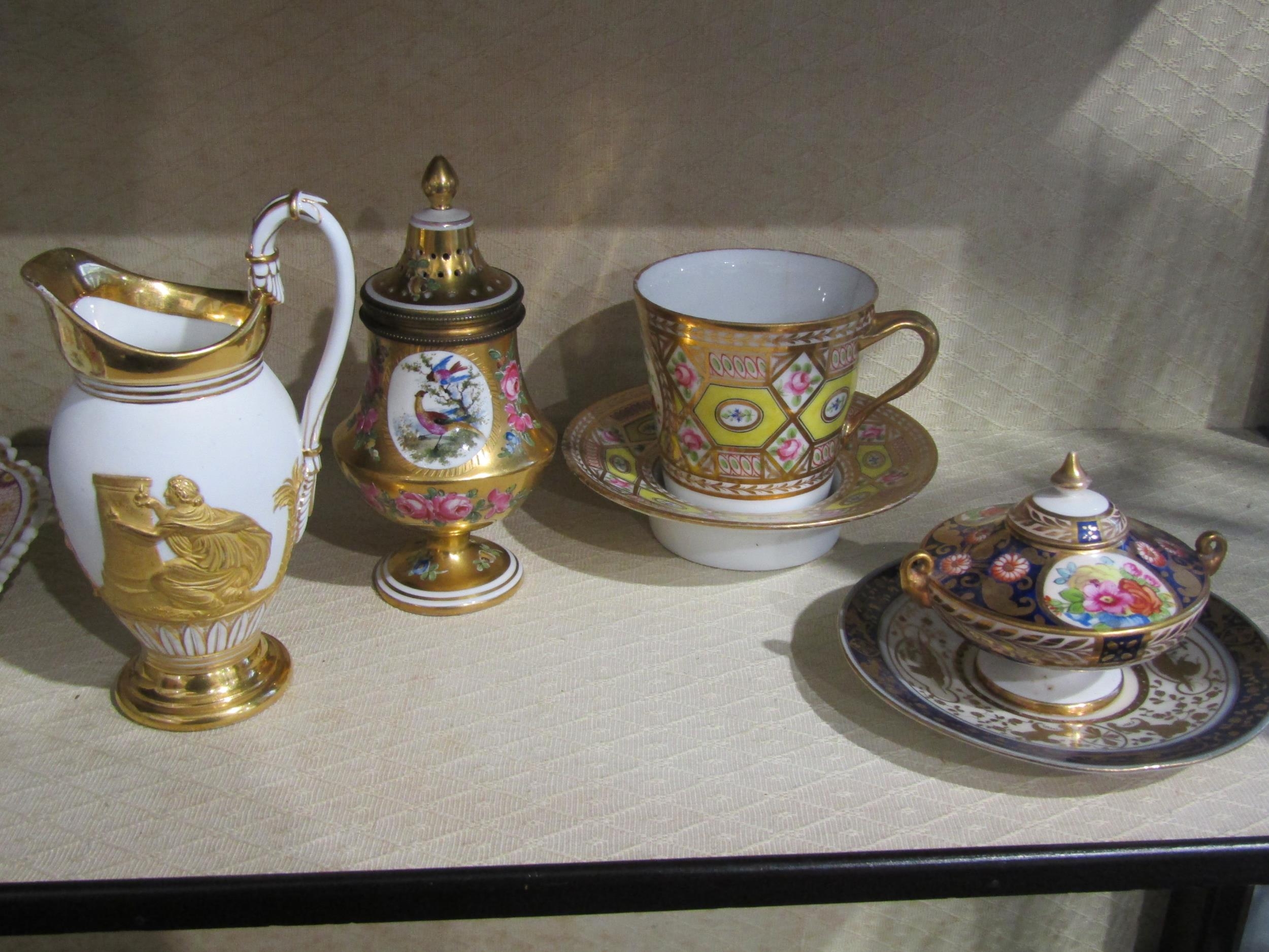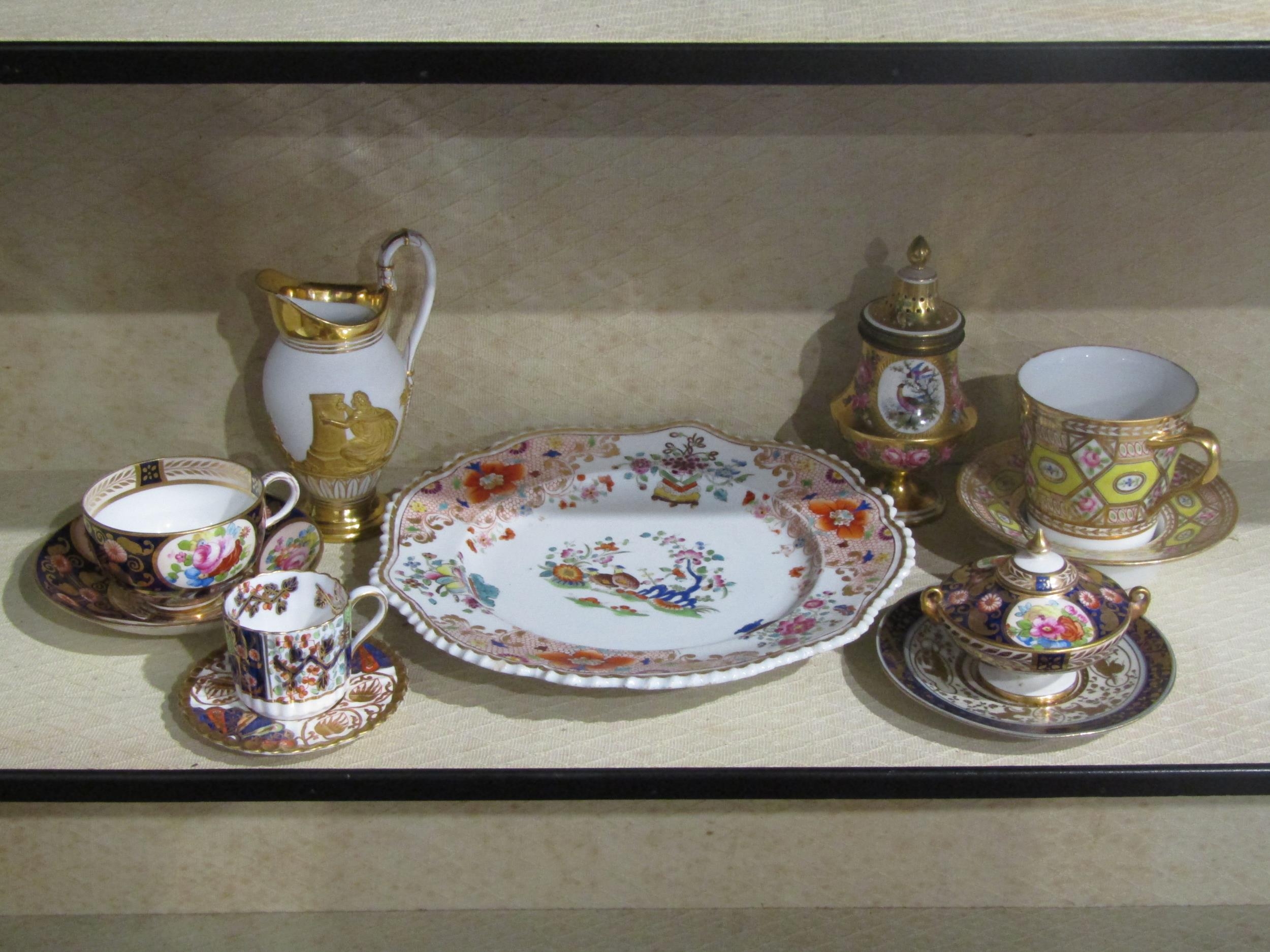 A group of ceramics to include Royal Crown Derby cabinet cup and saucer, covered sugar bowl, Chamberlain's Worcester porcelain dish plate etc. Some a/f